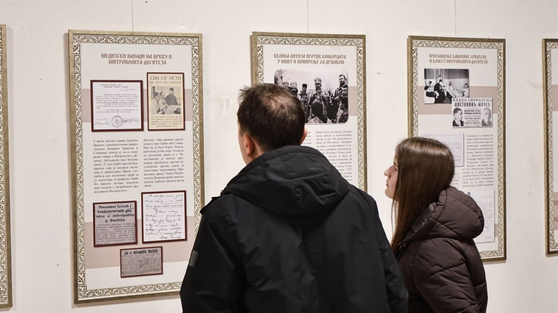 Свештеник Далибор Мидић, један од аутора изложбе „Служитељ мира и љубави“, посвећене Светом исповеднику Доситеју, епископу нишком и загребачком, упознао је присутне са животом, борбом и страдањем у Првом и Другом Светском рату митрополита Доситеја.