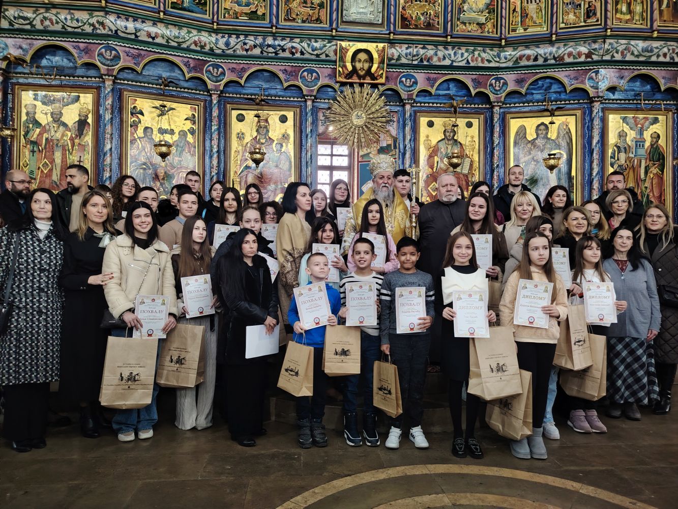 Митрополит врањски г. Пахомије је уручио награде и похвалнице истакнутим ученицима, честитајући им на труду, таленту и љубави коју показују према вери, Цркви и духовним вредностима.
