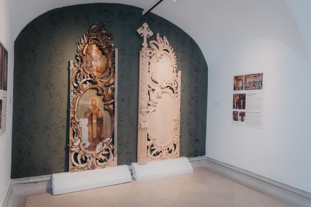 Поставка је осмишљена тако да посетиоце проведе кроз свет конзервације и рестаурације, представљајући процес васкрсавања изгледа иконостаса оштећеног ватром.