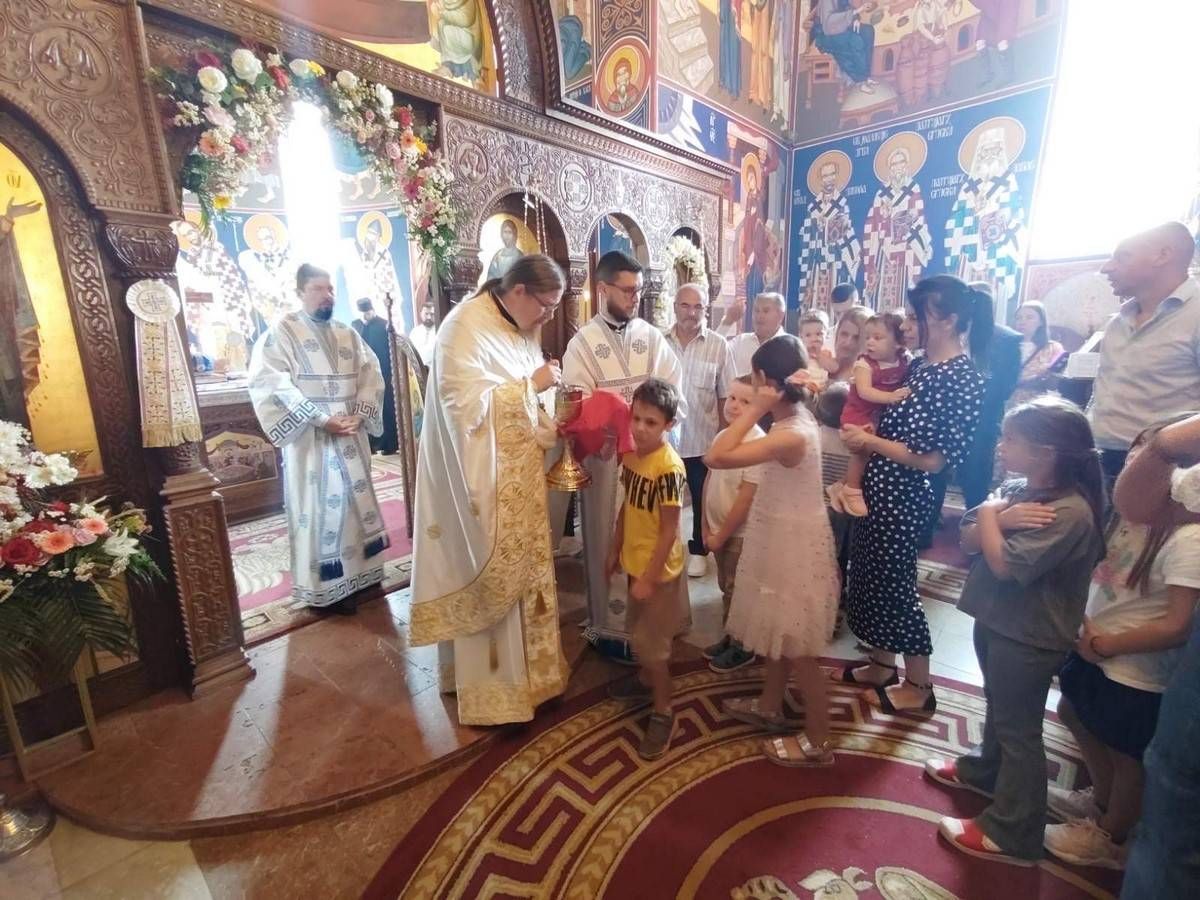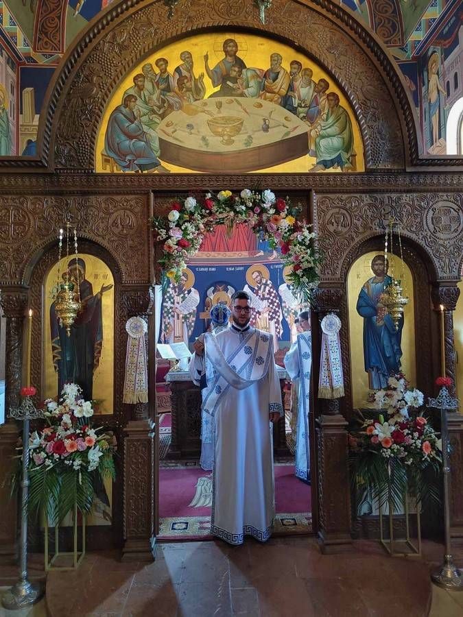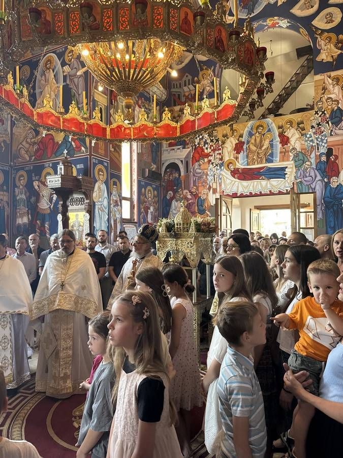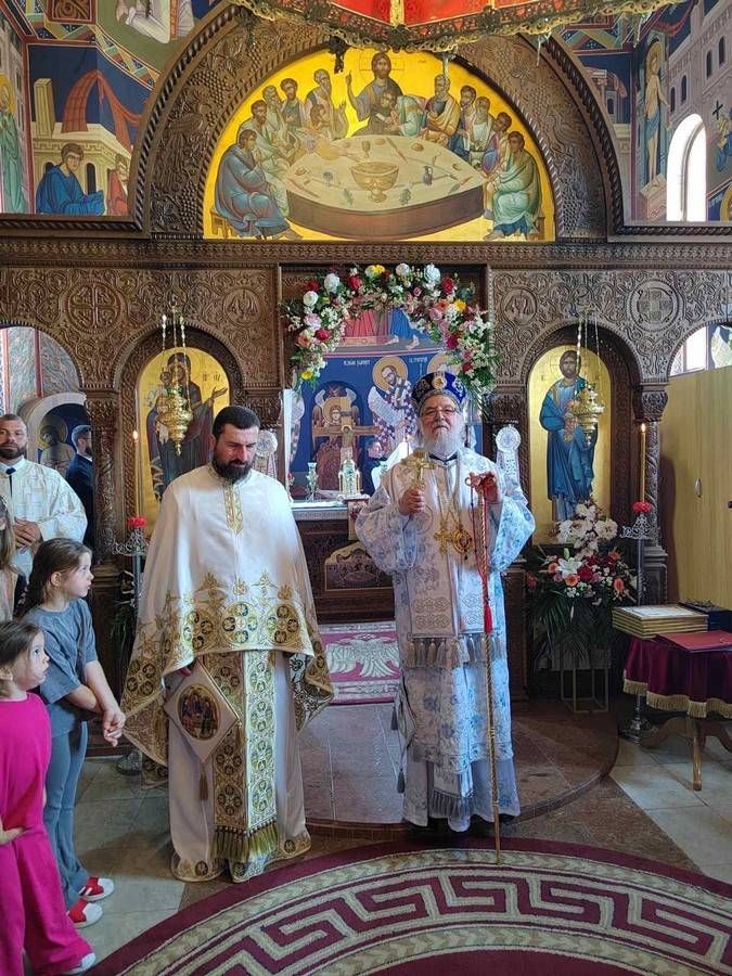 На дан када Црква прославља Недељу свих светих, 15. јуна 2025. године, Његово Високопреосвештенство Митрополит сремски г. Василије је служио свету Литургију у храму Свете Тројице у Новој Пазови.