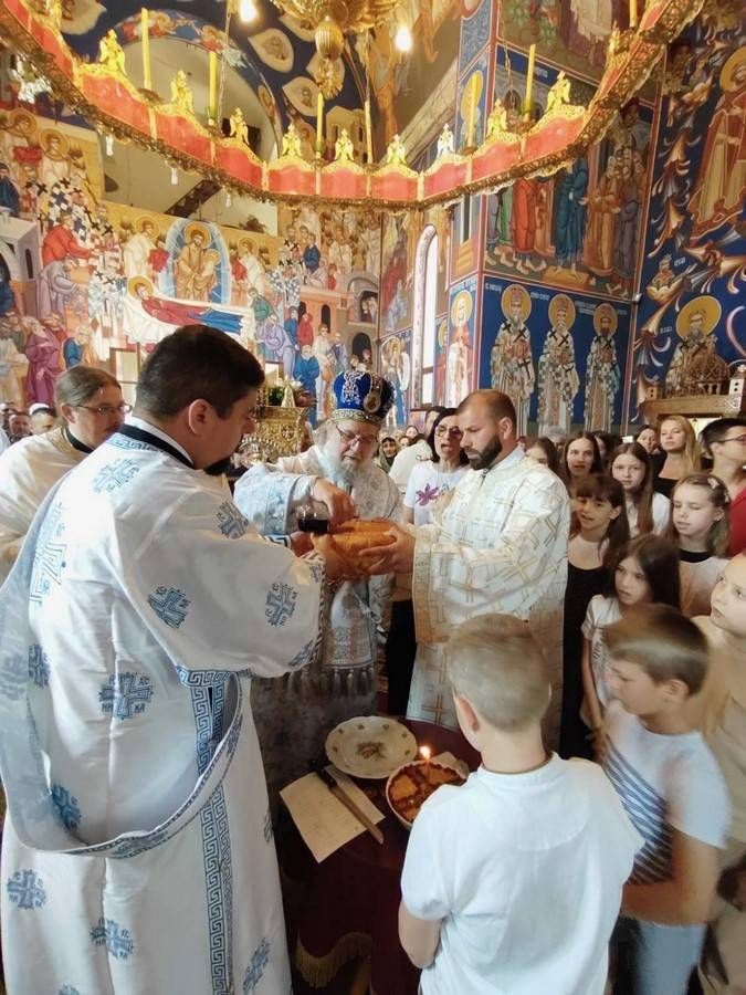 По завршеној Литургији, Високопреосвећени Митрополит г. Василије пресекао је колач и осветио жито, које су принели чланови дечијег хора и тако свечано обележили своју славу. Служеће свештенство и верни народ потом су позвани на трпезу љубави, уприличену трудом протојереја Саве Мишановића и Предрага Антонијевића.