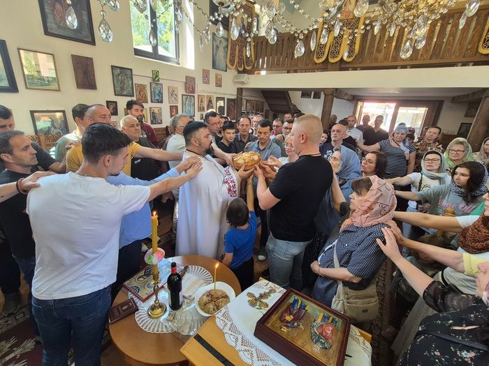 У празничној беседи владика је тумачио прочитани јеванђелски одељак и истакао да вера не може почивати само на знању стеченом из књига и гледањем емисија са верском тематиком, већ је вера дубоко лично познање Христа које се стиче смирењем, молитвом и црквеним животом, и може бити спасоносна само ако је живимо у Цркви у заједници са Господом, уз покајање и учествовање у светим Тајнама. Његово Високопреосвештенство је, даље, подсетио да нас Господ ослобађа од три највића непријатеља – греха, смрти и ђавола, али да то ослобођење захтева и наше учешће, наш одговор на Његов позив, јер ако човек свесно одбија Христа и Цркву он себе лишава вечног живота. Након Литургије прослављање празника настављено је за славском трпезом коју је припремио овогодишњи домаћин славе г. Милан Николић.