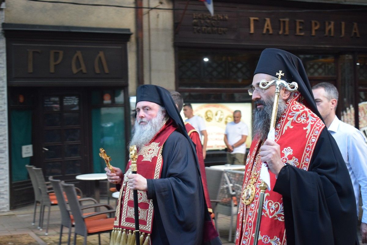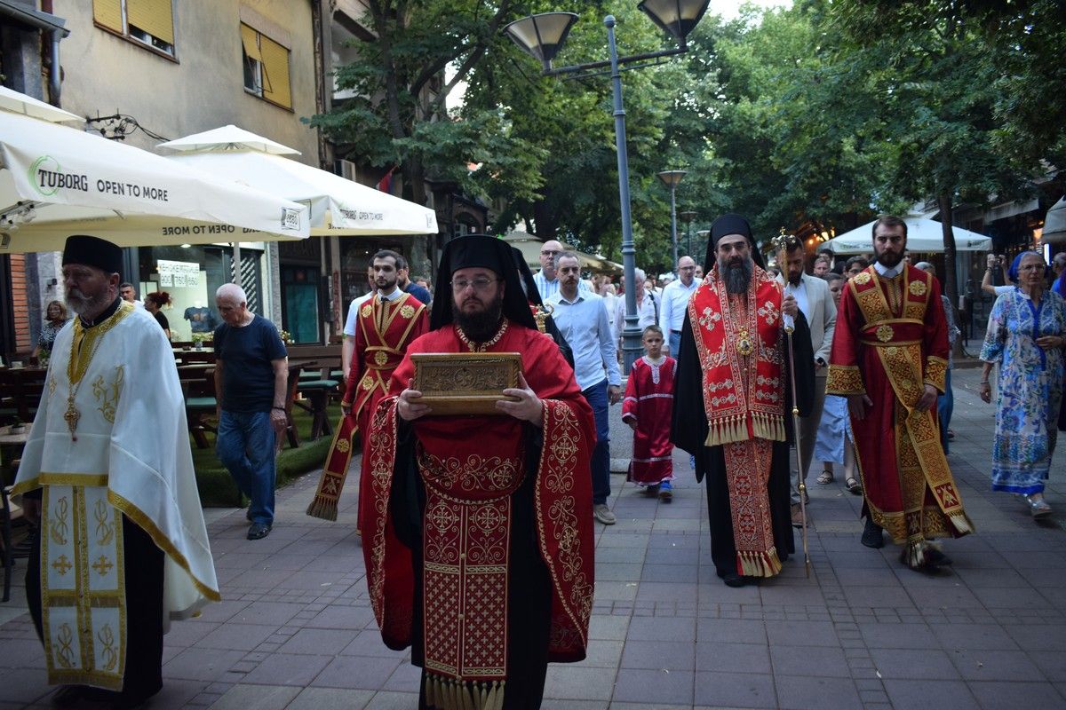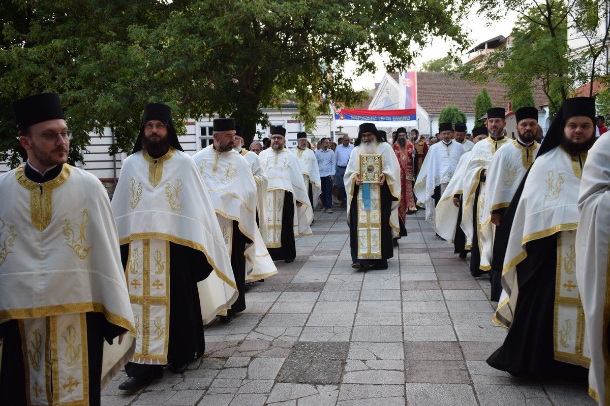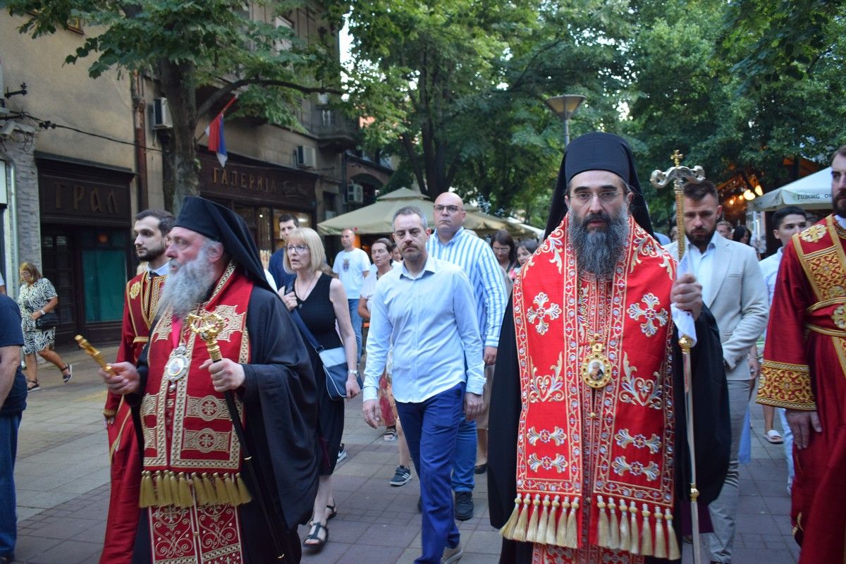 После вечерњег богослужења, величанствена празнична литија је прошла градским шеталиштем, уз учешће великог броја верних, представника ласти, Војске и Полиције. Литија је завршена повратком у храмовну порту, где се Високопреосвећени Митрополит обратио сабраном верном народу, честитавши предстојећу храмовну и градску славу.