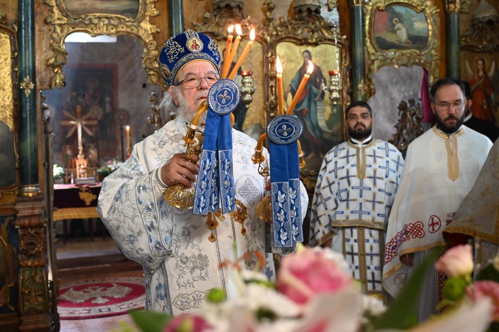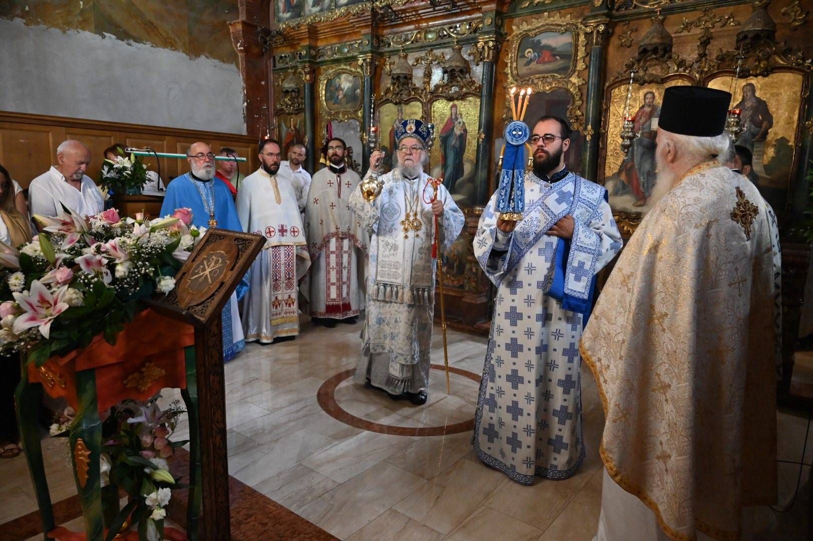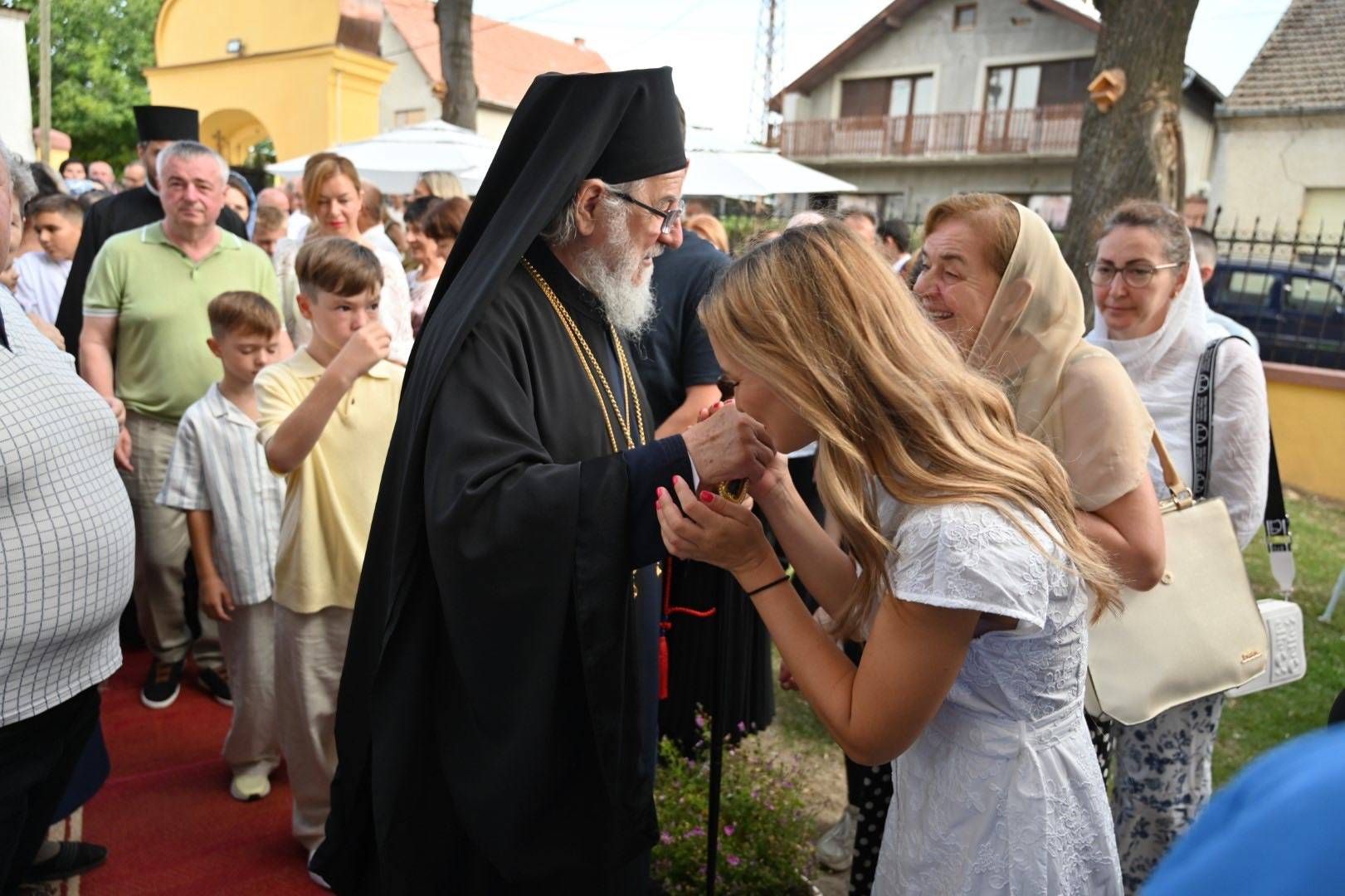 Саслуживали су: архимандрит Стефан Вучковић, игуман манастира Велика Ремета; архијерејски намесник подунавски протојереј-ставрофор Гавра Милановић; протојереј-ставрофор Мирко Мишановић, старешина храма Светог Саве у Черевићу; протонамесник Даниел Кобиљски, парох сивачки; протонамесник Зоран Ерић, парох петроварадински; и јереј Јован Рајак, старешина храма Свете великомученице Марине – Огњене Марије у Сремској Каменици. Благољепију свете Литургије допринели су хор „Светог великомученика Георгија“ са Старе Бежаније из Београда и Дечји хор храма Светог архангела Гаврила из Сусека.