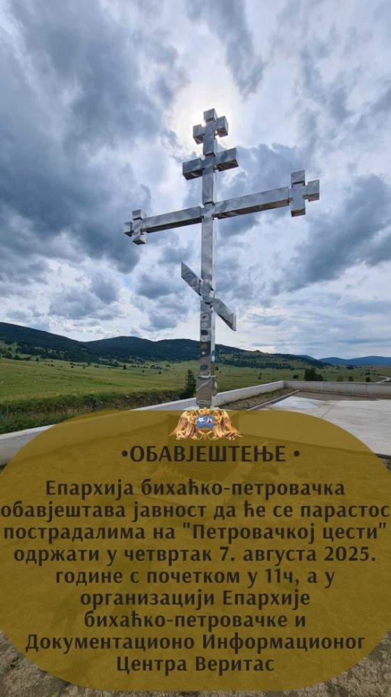 Епархија бихаћко-петровачка обавштава јавност да ће се парастос пострадалима на Петровачкој цести служити 7. августа 2025. године са почетком у 11 часова.