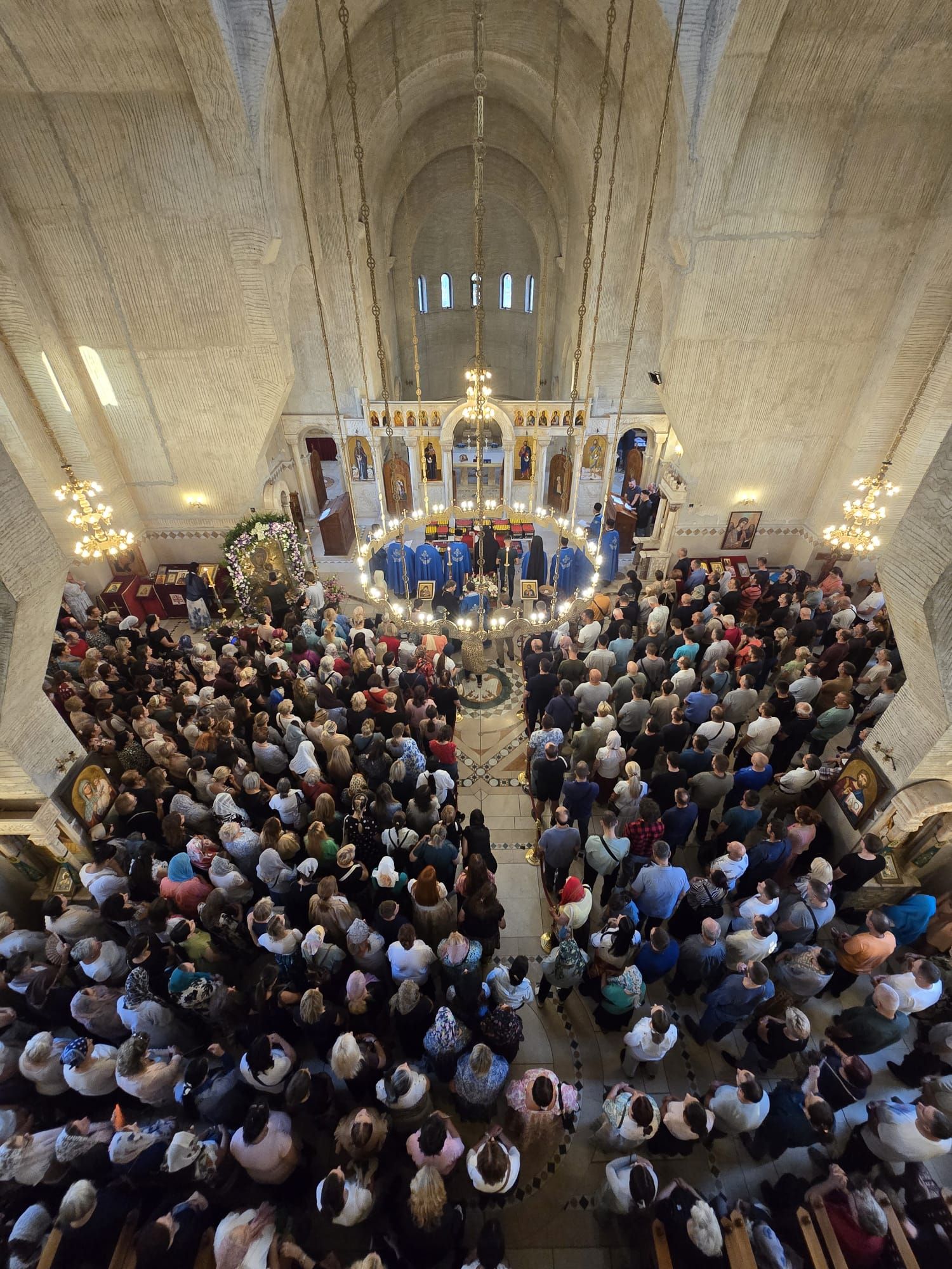 По благослову Његове Светости Патријарха српског г. Порфирија, Његово Преосвештенство Епископ моравички г. Тихон је служио 30. августа 2025. године свету тајну јелеосвећења поводом празника Иконе Пресвете Богородице Страдалне у цркви Светог Симеона Мироточивог на Новом Београду.