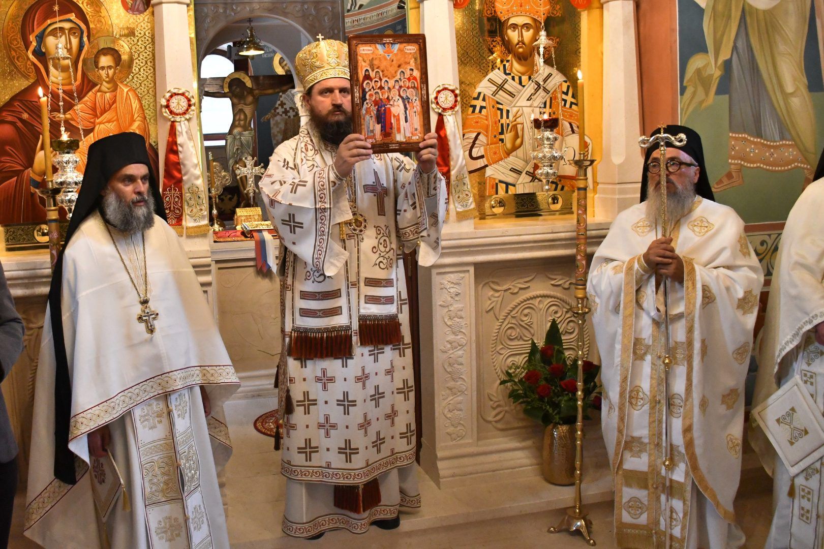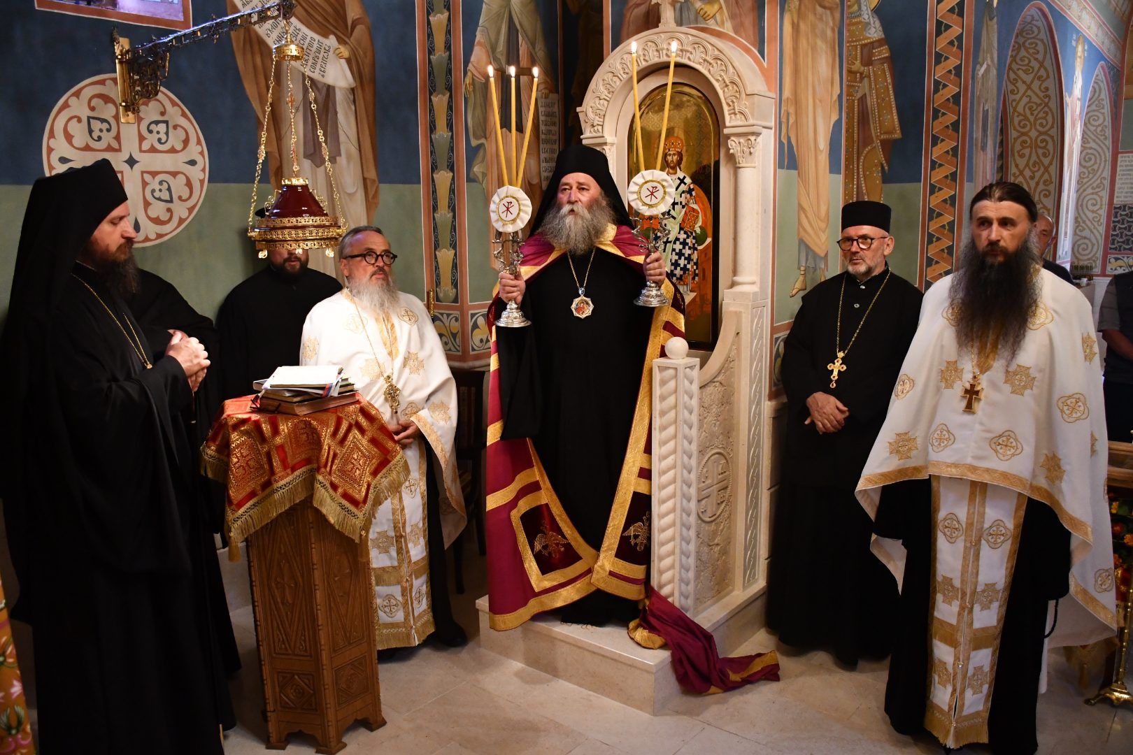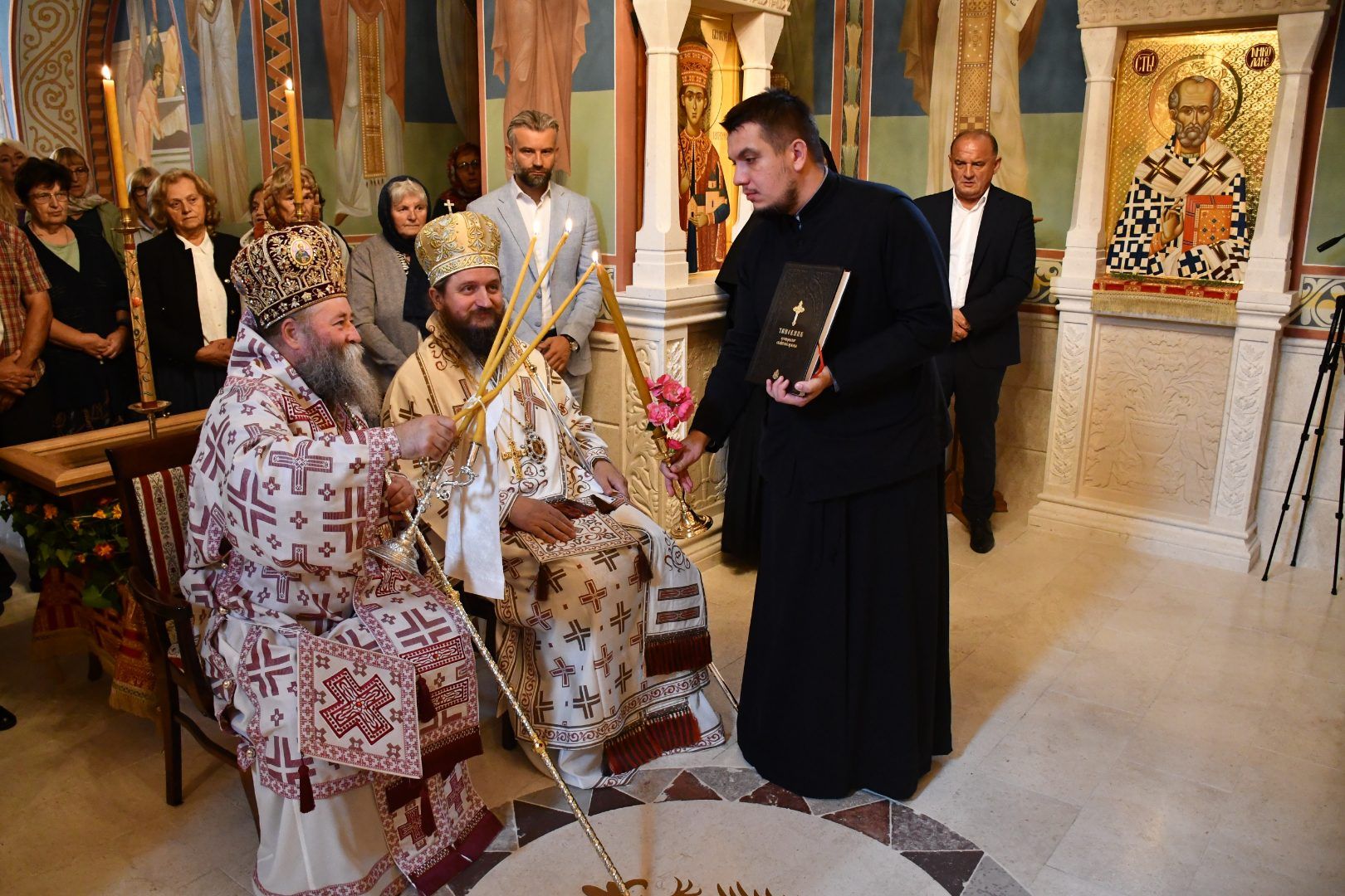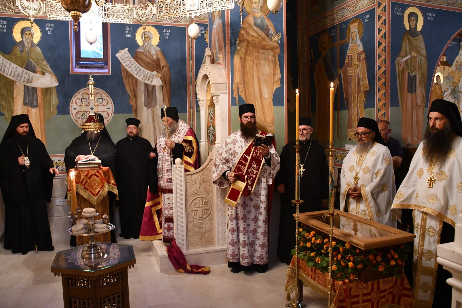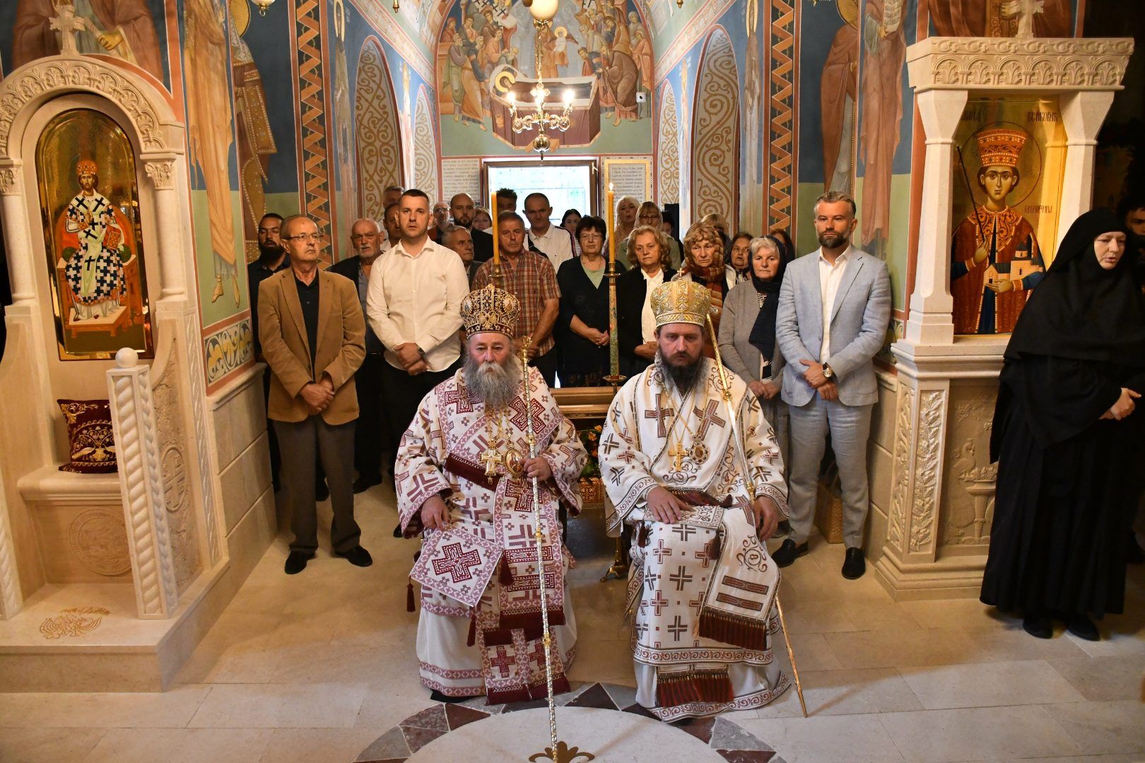 Саслуживали су: Његово Преосвештенство Епископ бихаћко-петровачки г. Сергије; архимандрити Данило (Павловић), Серафим (Кужић), Наум (Милковић), Варнава (Дамјановић) и Василије (Рожић); игуман Јеротеј (Влајковић); протопрезвитери-ставрофори Маринко Радмило, Драган Шкалоња и Саво Јанковић; презвитер Марко Радмило; протођакон Немања Рељић.