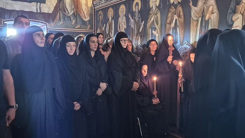 И данас смо добили милошћу Божјом и великим трудом сестара монахиња ове свете обитељи и нашег оца Рафаила, духовника ове светиње, четири нове монахиње. Умножило се сестринство ове обитељи. Нека Бог благослови наше нове сестре, да их укрепи на овом веома захтевном монашком подвигу, али подвигу под Божјим благословом и благодаћу. Ако се добро наоружају смирењем, покајањем и послушањем, њима ће Бог дати силе да напредују, да духовно узрастају и процветају заједно са мати игуманијом Михаилом, која данас прославља свој имендан. Честитамо јој са свим сестрама ове свете обитељи.