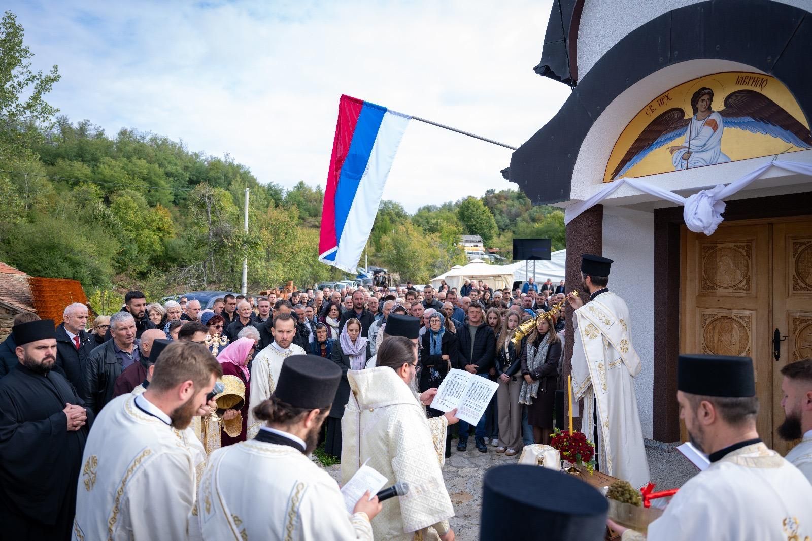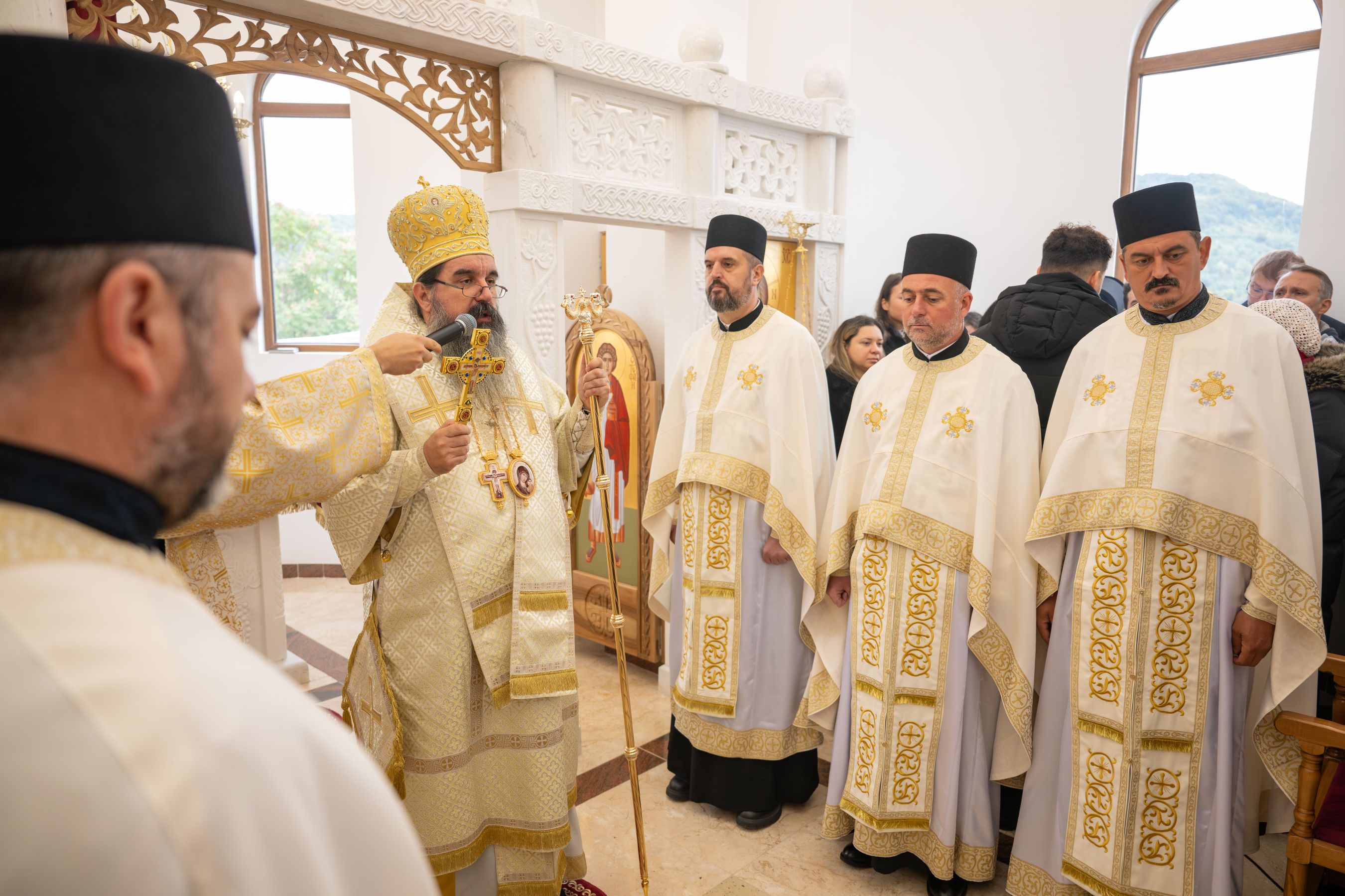 „Освећење овог лепог храма посвећеног Светом архангелу Гаврилу и свим осталим Небеским бестелесним силама је велики дан за ово село, али и читаву Азбуковицу. Центар живота свакога хришћанина у православној Цркви је света Литургија. Она се служи у храму Божијем и храмови зато и настају као света места да би се могли сабирати хришћани, јер света Литургија зависи од сабрања људи на једном месту. Господ нам је рекао у Јеванђељу да где су двоје или троје окупљених у име Његово ту је и Он. Зато сваки пут када се окупљамо на светој Литургији Дух Свети силази и чини верни народ народом Божијим, Новим Израиљем и Телом Христовим. Веома је битно какви су наши храмови и како их градимо, јер они изражавају суштину наше вере. Сваки храм је светиња у којој се може само богослужити и не може ништа друго радити. Храм зрачи благодаћу Божијом и сав простор око храма је освећен. Ова светиња је израз вере овог народа и свих оних који су помагали да се храм изгради. Ми данас потврђујемо да продужавамо традицију својих предака и отаца, али и истичемо је Православна Црква крајеугаони камен који сабира наш народ“ – беседио је владика Јеротеј.