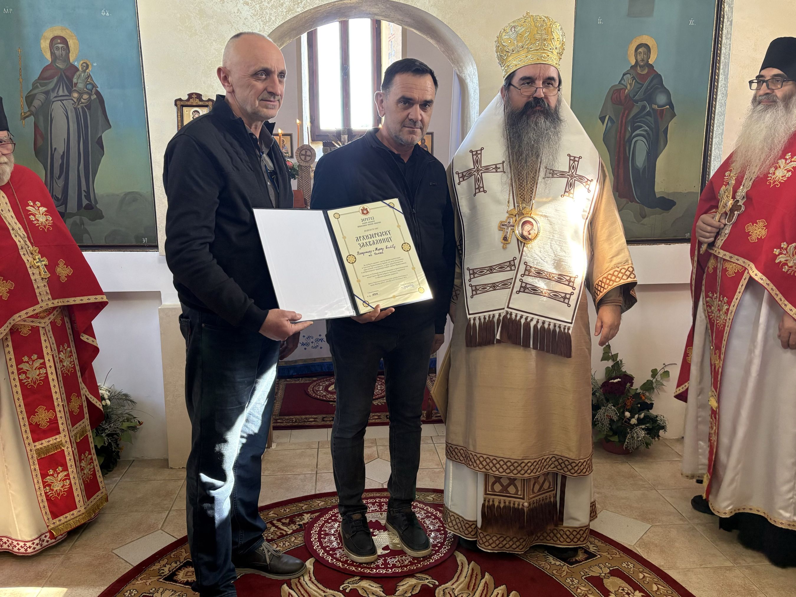 На крају свете Литургије, епископ Јеротеј је доделио Архијерејску грамату признања г. Жељку Јовићу из Београда, родом из Милошевца, а Архијерејску захвалницу г. Владимиру и Мирку Бабићу из Чачка.