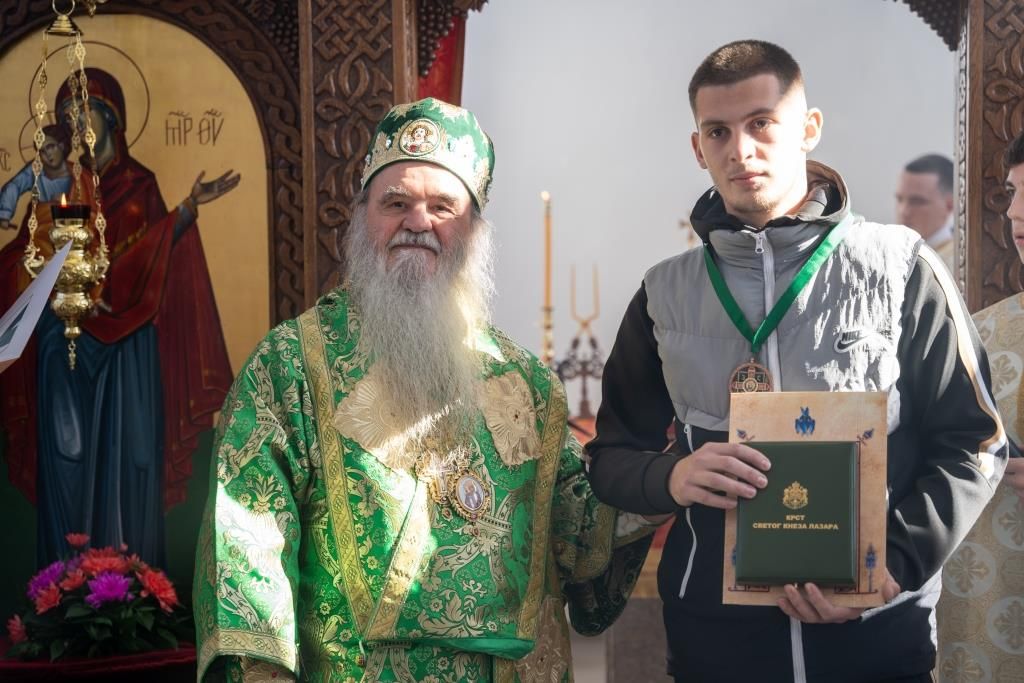 После заамвоне молитве Његово Високопреосвештенство је одликовао јереја Милана Бањца чином протојереја.