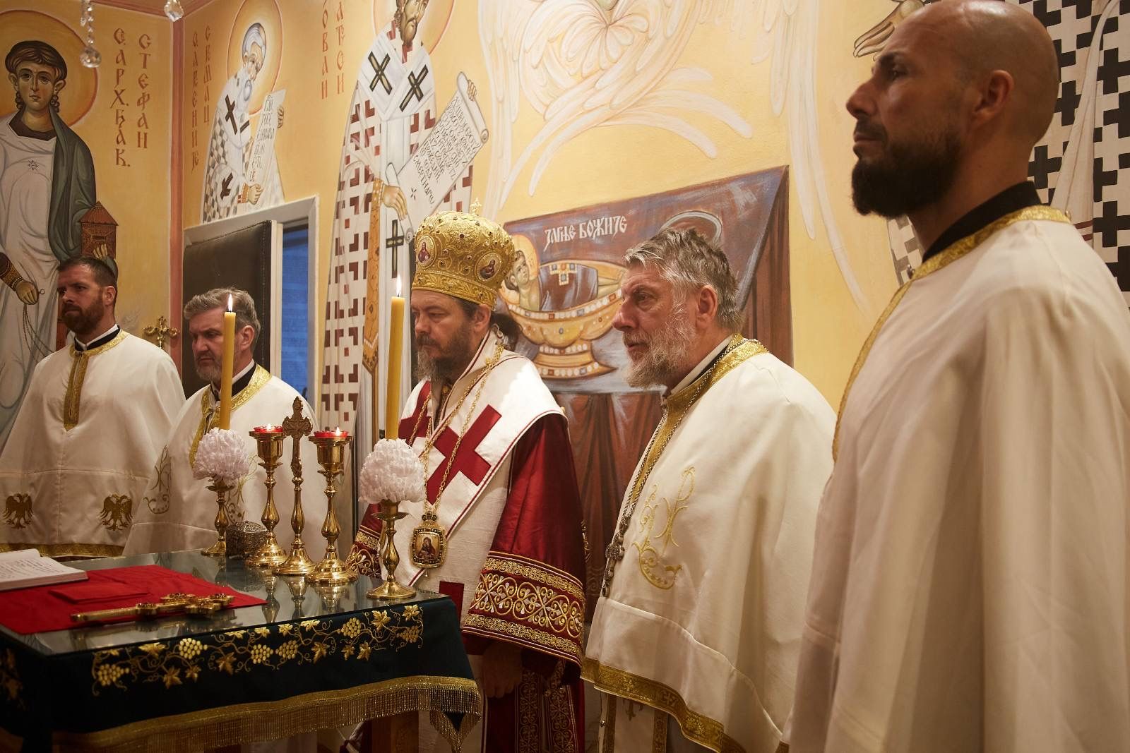Саслуживали су: протојереј-ставрофор Бранислав Цинцаревић, старешина Саборног храма Свете Тројице у Нишу; протојереј Миодраг Павловић, архијерејски намесник нишки; војни свештеник 63. падобранске бригаде мајор Иван Аврамовић; војни свештеник Треће бригаде Копнене Војске капетан прве класе Иван Ганић; и ђакон Лазар Симић. Појали су ученици Богословије Светих Кирила и Методија из Ниша.