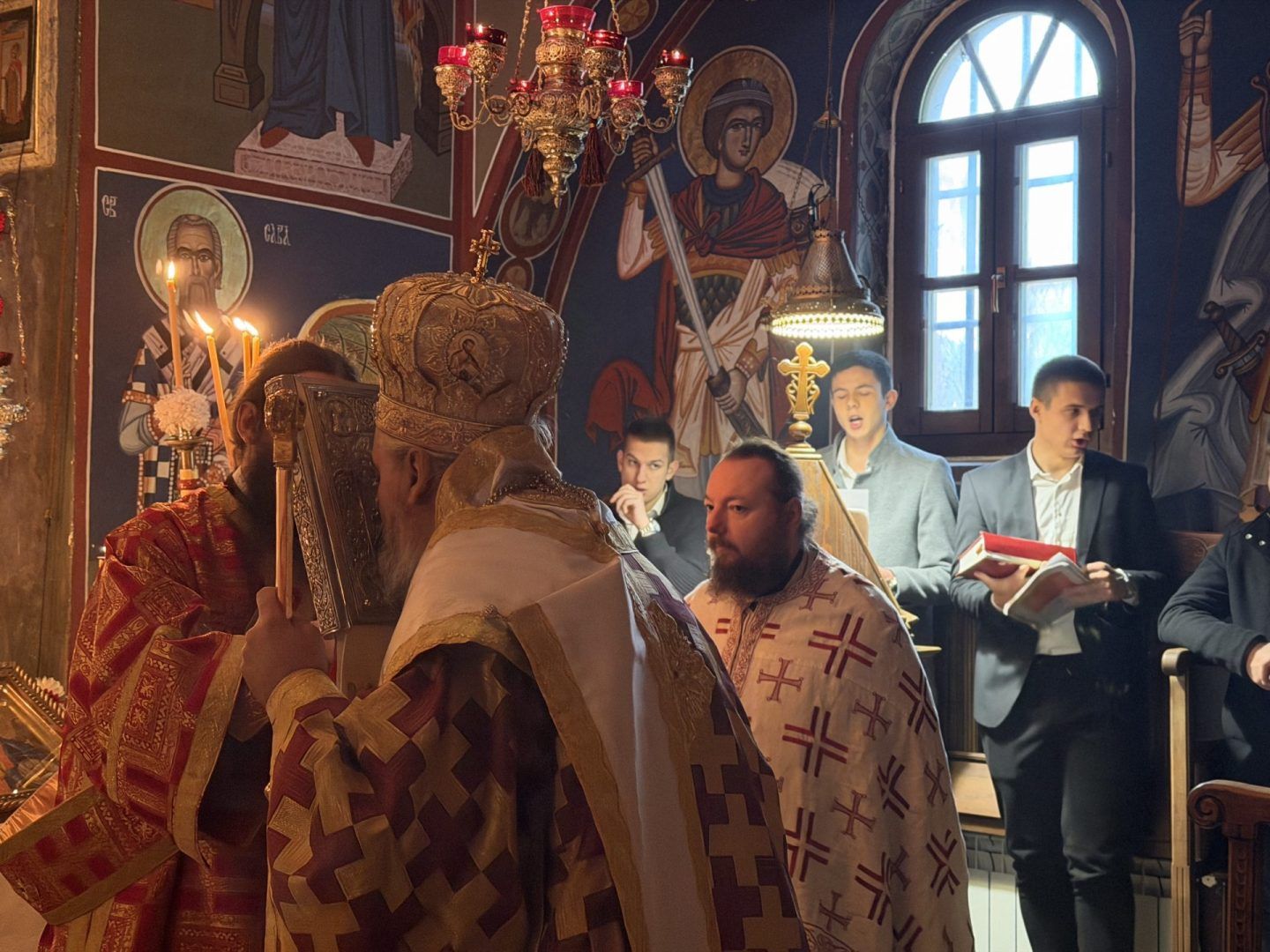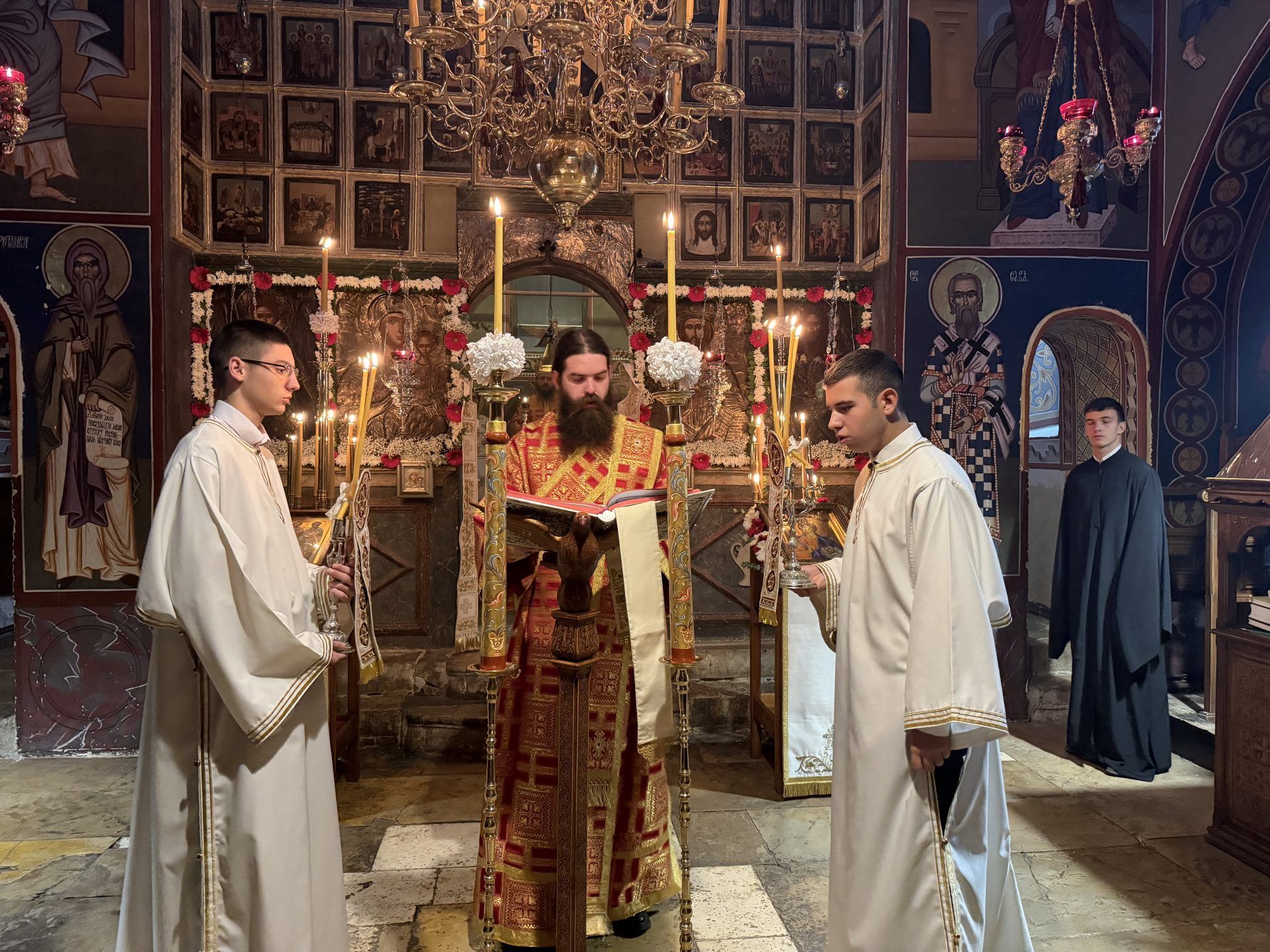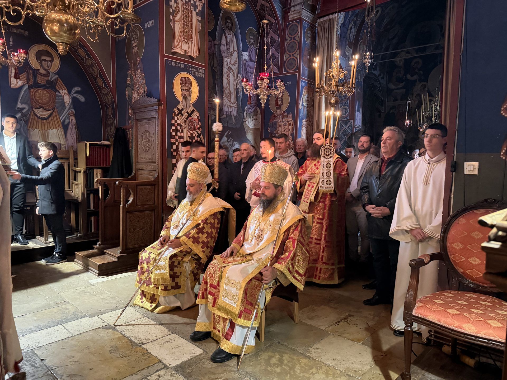 Саслуживали су: митрополит Никодим, игуман Свастијан, јеромонаси Макарије и Киријак, презвитер Здравко Цвијић, протођакон Немања Рељић и ђакони Момир Ђукић и Горан Лукић. После читања јеванђељског зачала присутнима се обратио епископ Сергије. После заамвоне молитве извршено је благосиљање славских приноса. Свечана славска трпеза љубави припремљена је у манастирској трпезарији.
