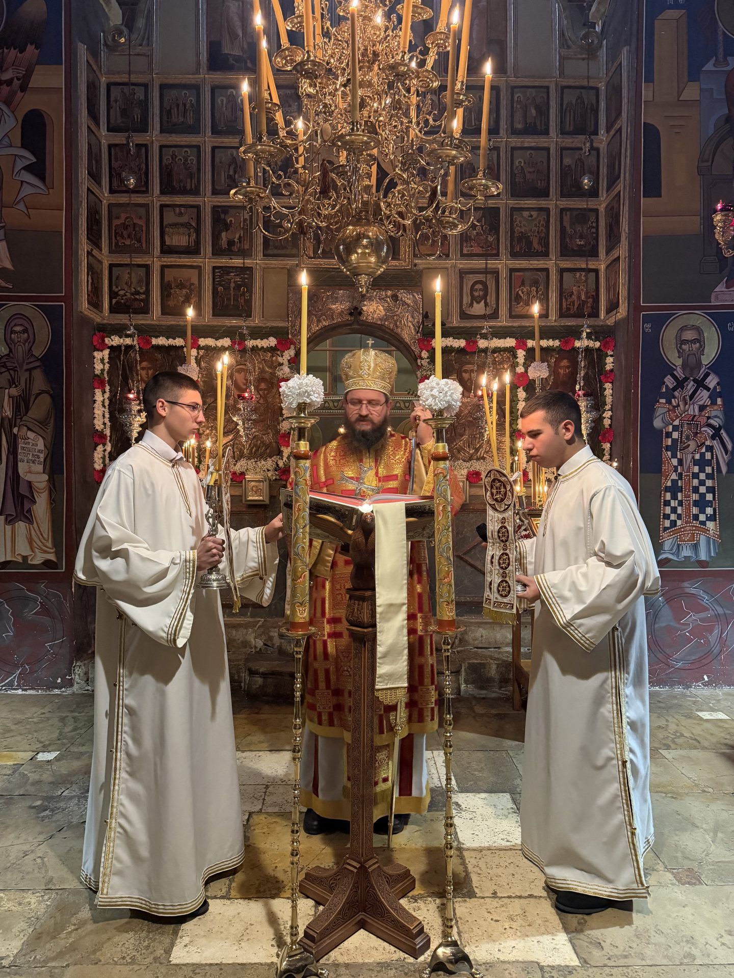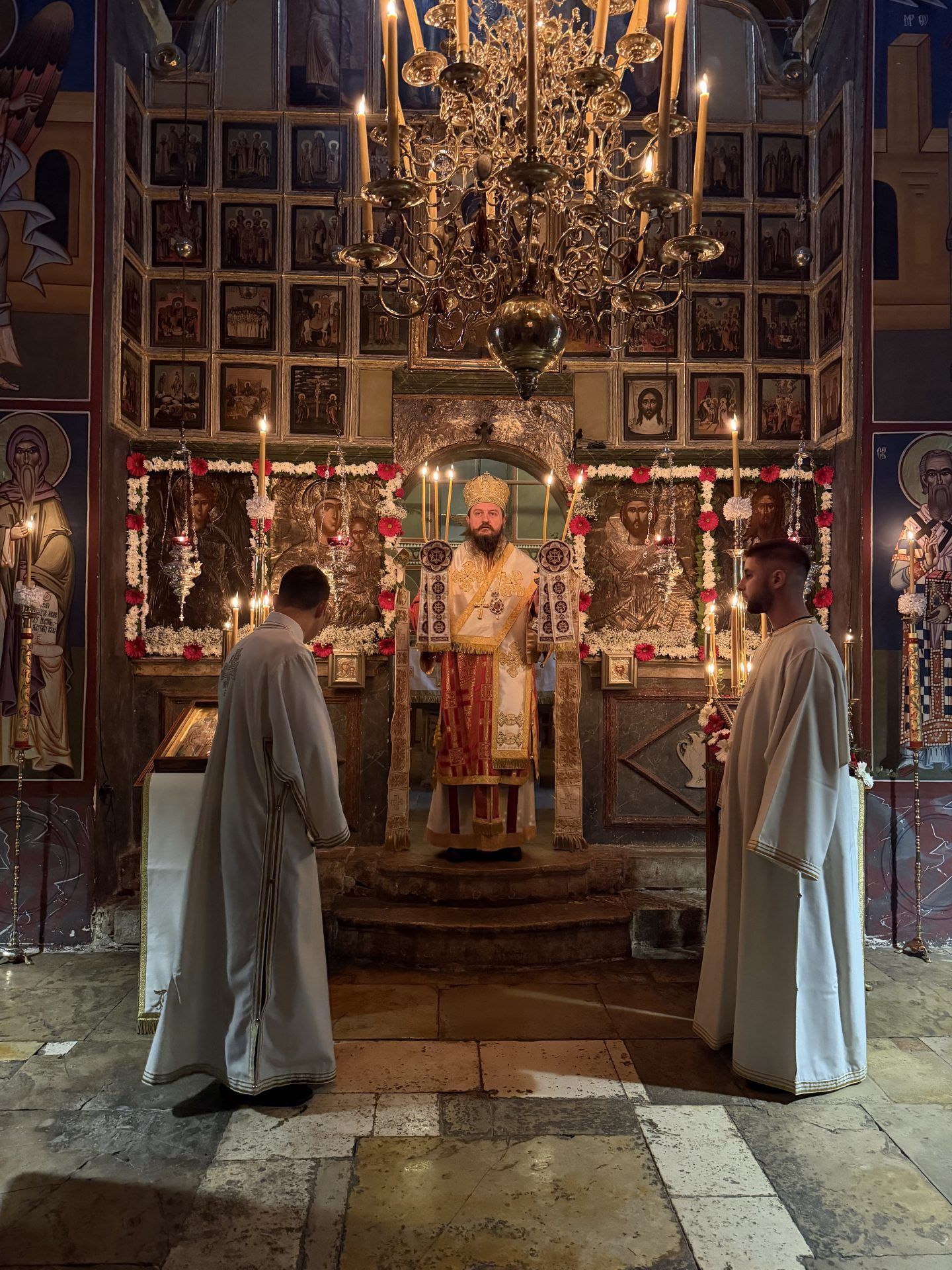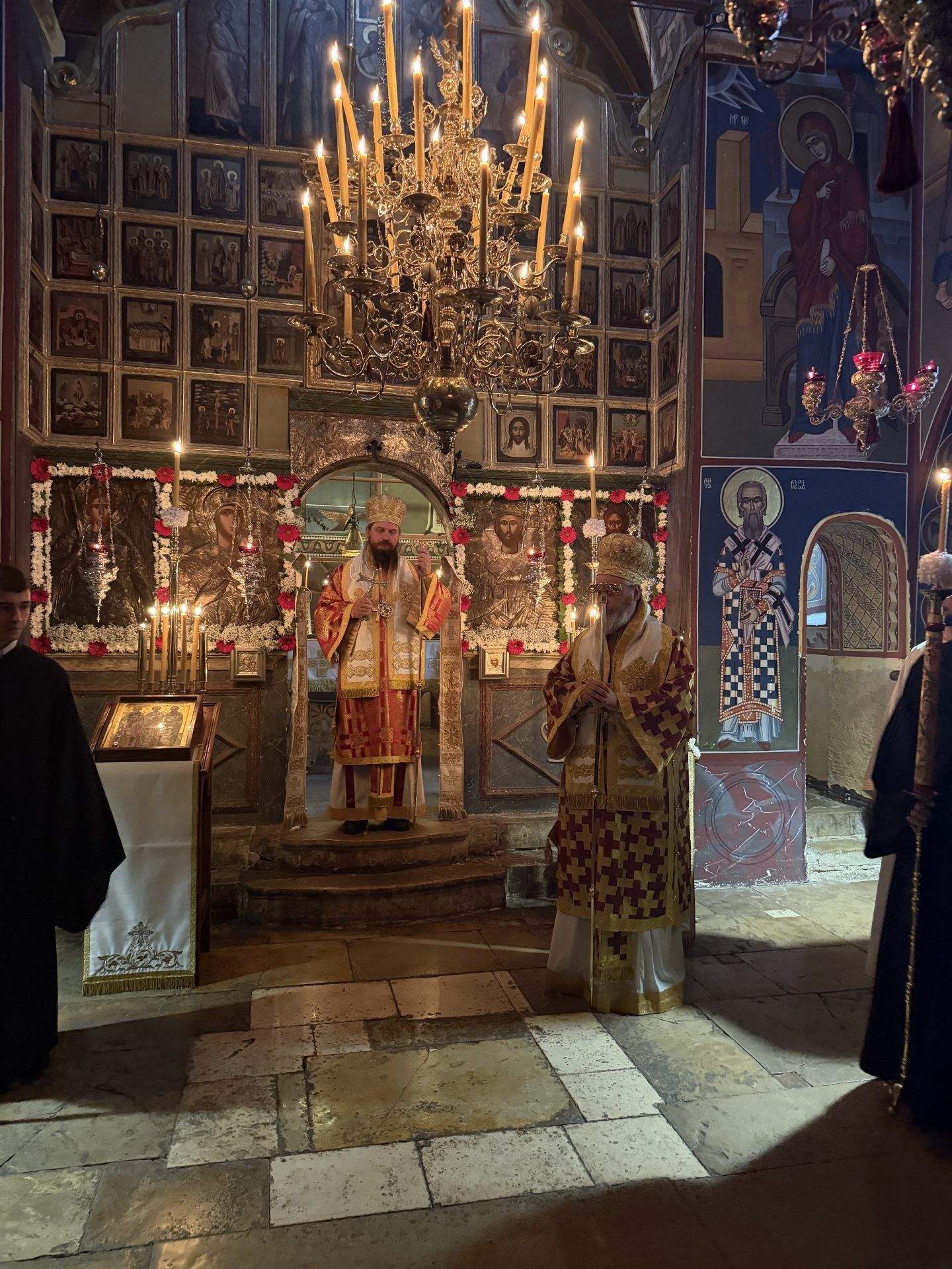 Саслуживали су: митрополит Никодим, игуман Свастијан, јеромонаси Макарије и Киријак, презвитер Здравко Цвијић, протођакон Немања Рељић и ђакони Момир Ђукић и Горан Лукић. После читања јеванђељског зачала присутнима се обратио епископ Сергије. После заамвоне молитве извршено је благосиљање славских приноса. Свечана славска трпеза љубави припремљена је у манастирској трпезарији.