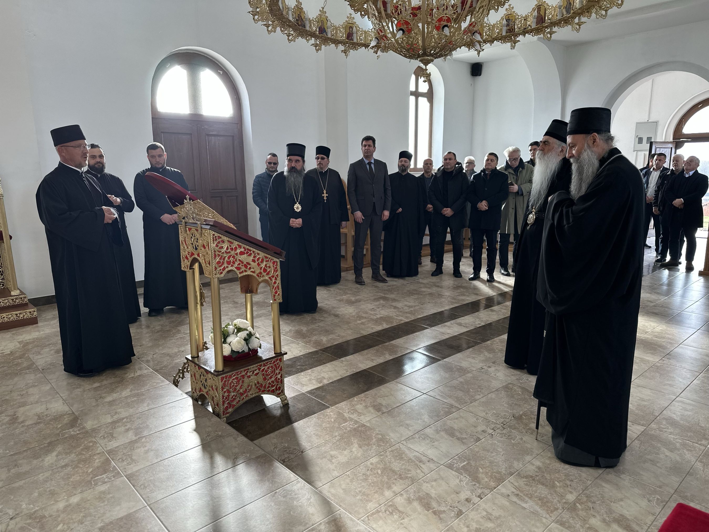 „Благодарим свима што нас је све овде данас сабрао Свети краљ Стефан Дечански. Благодарим свим оцима који су дошли са разних страна, пре свега оцу Ђорђу, и благодарим Патријарху Порфирију, који је дао благослов да они дођу и саслужују данас овде, благодарим и свим другим оцима и свима вама, браћо и сестре, који сте овде дошли да прославимо Светог краља Стефана Дечанског, великог угодника Божијег. Док је краљ Стефан владао као краљ српски, он се брину о свом српском народу, бранио га и давао му пример у сваком смислу – и као владар и као хришћанин. Пример је давао својом трпељивошћу и послушношћу вољи Божијој, јер је дуготрпељиво и у тишини подносио све што му је од Господа долазило. Он је дан данас остао са нама, пре свега својом молитвом за српски род и српску државу, али и оставивши нам своју дивну светињу манастир Високе Дечане“.