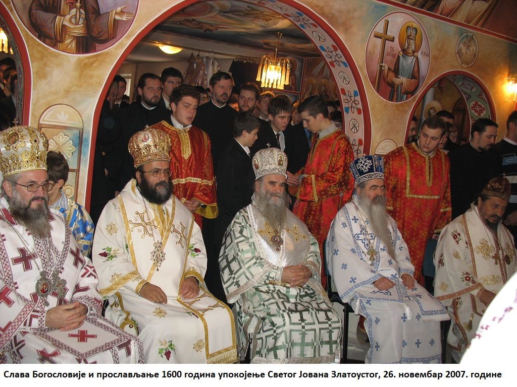И текст епископа Атанасија Јевтића (+2021) Пети јеванђелист Свети Јован Златоусти као егзегета Речи Божје, који је прочитан у Крагујевачкој богословији 25. новембра 2007. године на симпосиону поводом 1600 година упокојења Светог Јована Златоуста, припада уводном одељку ове публикације. Овај скуп из 2007. године може се сматрати једним од најважнијих догађаја у летопису крагујевачког богословског училишта.