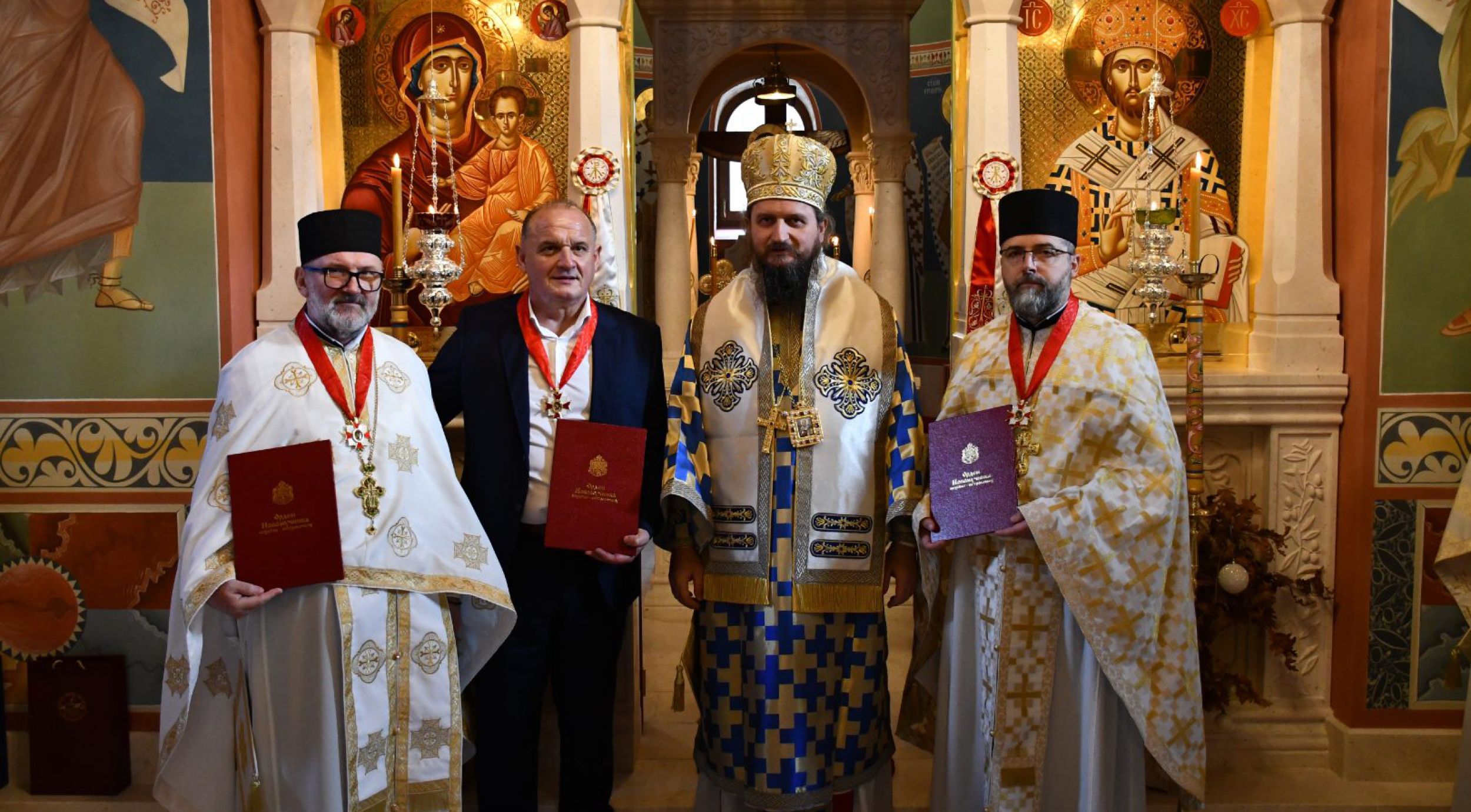 Орденом Светих новомученика бихаћко-петровачких владика Сергије је одликовао г. Миломира Зукића из Соколова, протопрезвитера-ставрофора Маринка Радмила и протопрезвитера-ставрофора Сашу Црљића за њихову показану делатну љубав, жртву и залагање за Епархију бихаћко-петровачку и Светониколајевску свештену обитељ манастира Рмња.