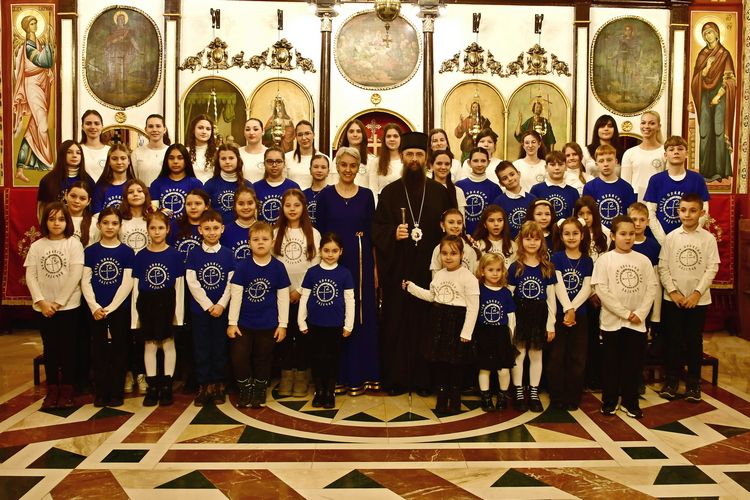 – Захваљујући вама ми се радујемо што сте вашом љубављу загрејали наша срца, што радујете све нас, а посебно вашу драгу диригенткињу Наташу, што чујемо да гласови сазревају, што видимо да се хор умножава, а то нам даје радост и наду да ће и наш велики хор у вама имати добро појачање. После беседе, чланови Дечјег хора символично су везали владику Илариона у духу празника, а он се дрешио божићним пакетићима.
