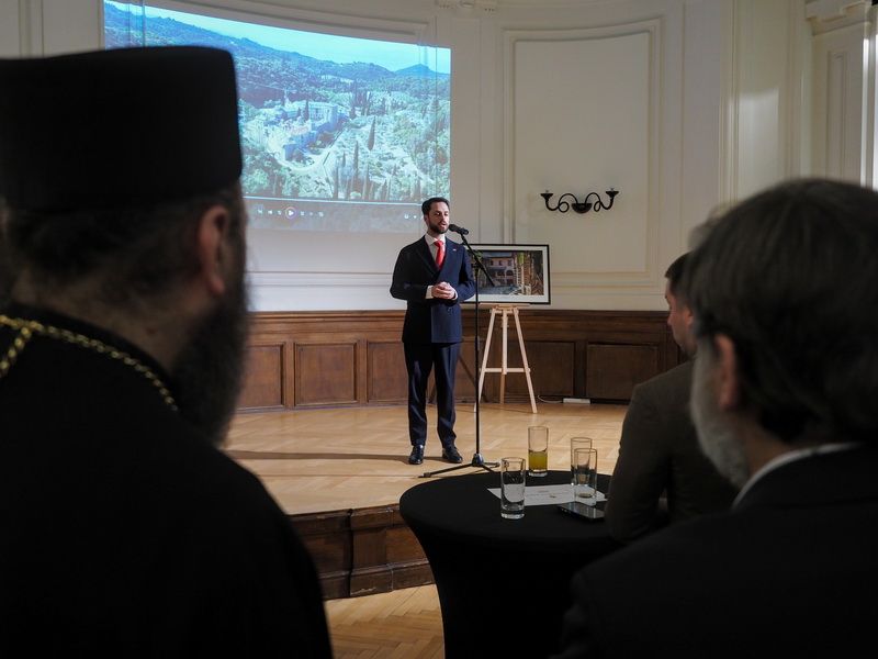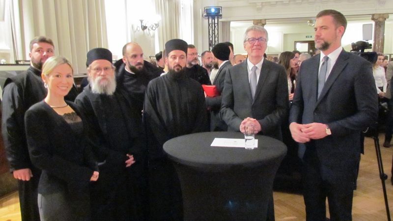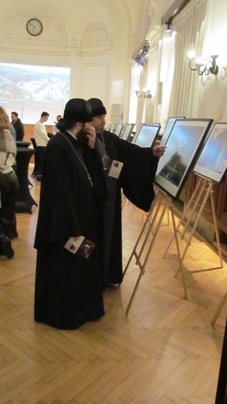 Поздравну беседу изговорио је Његово Преосвештенство Епископ мохачки и викар Митрополита бачког г. Дамаскин, док је изложбу отворио високопреподобни игуман Хиландара архимандрит Методије. Догађају су присуствовали: Његово Преосвештенство Епископ осечкопољски и барањски г. Херувим; свештеници и ђакони Епархије бачке и Епархије аустријске; г. Марко Благојевић, амбасадор Републике Србије у Аустрији; г. Синиша Бенцун, амбасадор Босне и Херцеговине у Аустрији; г. Денис Шулић, министар трговине и туризма Републике Српске; проф. др Жарко Обрадовић, амбасадор – стални представник Републике Србије при ОЕБС-у и другим међународним организацијама у Бечу; г. Младен Филиповић, шеф Представништва Републике Српске у Аустрији; др Ненад Иванишевић, покрајински секретар Аутономне покрајине Војводине за привреду и туризам; г. Марко Ромић, председник Комисије за Хиландар Републике Српске; као и велики број угледних дипломата и личности из јавног и културног живота.
