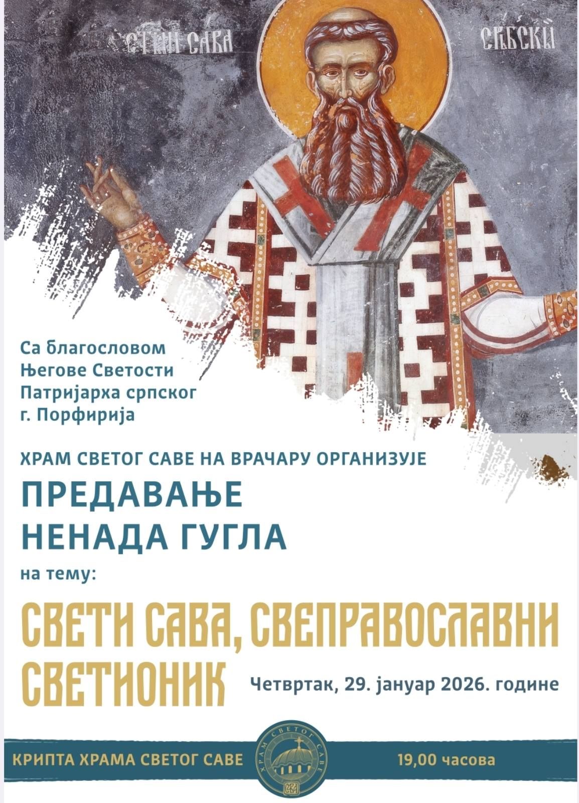 С тим у вези, оно што нас очекује у оквиру прославе празника Светог Саве, првог Архиепископа српског и просветитеља, биће организовани Светосавски дани у Храму Светог Саве од 22. до 31. јануара, духовно-културни програм посвећен очувању и савременом сведочењу светосавског завета.