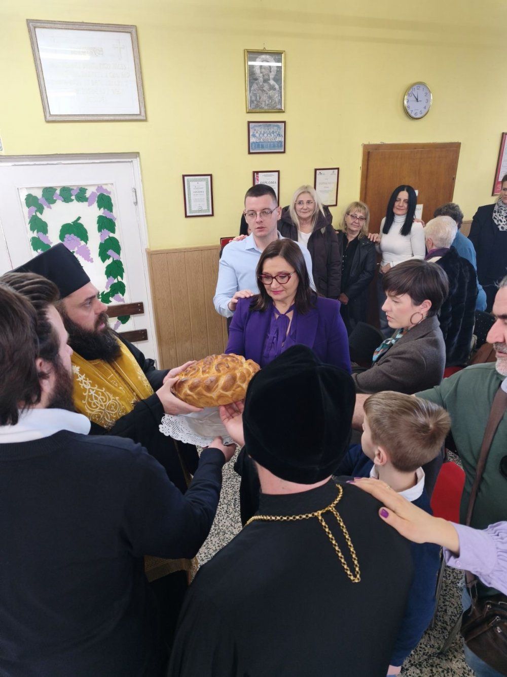– Од Светог Саве све почиње, он је наш народ усмерио ка пуноћи Божјој и Извору бесмртности. Сви у себи носимо нит која нас везује са Богом, спаја нас са Царством Божјим, све захваљујући Светом Сави. Он је наш род напојио Јеванђељем и идеалима које оно носи, учинио је да будемо небески народ. Учитељима је задао да уз образовање и васпитање проносе и духовне и моралне вредности. Данас, широм васељене, где год дише српско биће пева се Ускликнимо с љубављу. Ускликнимо и ми с љубављу Светитељу Сави, ономе који нам је омогућио да окусимо Царство Божје овде на земљи, да се родимо Духом. На почекту тропара Светом Сави прве речи су пут који води у живот. Заиста је његова вера и оно чему нас је научио васпитава нас за Царство, да будемо постојан и достојанствен народ који носи свој крст – силу и знамење целом свету.