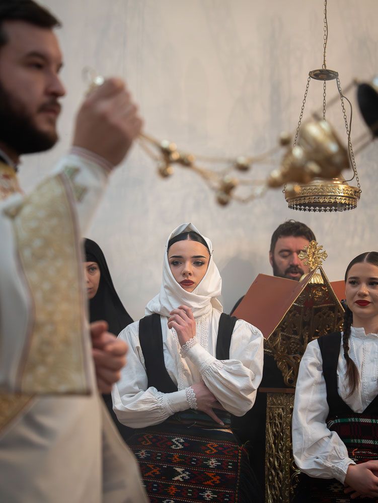 У молитвеном присуству ученика и наставника Гимназије, верног народа загребачке парохије, представника Амбасаде Републике Србије и Управе за дијаспору и Србе у региону Владе Републике Србије, епископу Кирилу су саслуживали свештеник Андреј Иваненко и ђакон Александар Лукић. Појање је предводио протојереј Зоран Радић, парох загребачки.