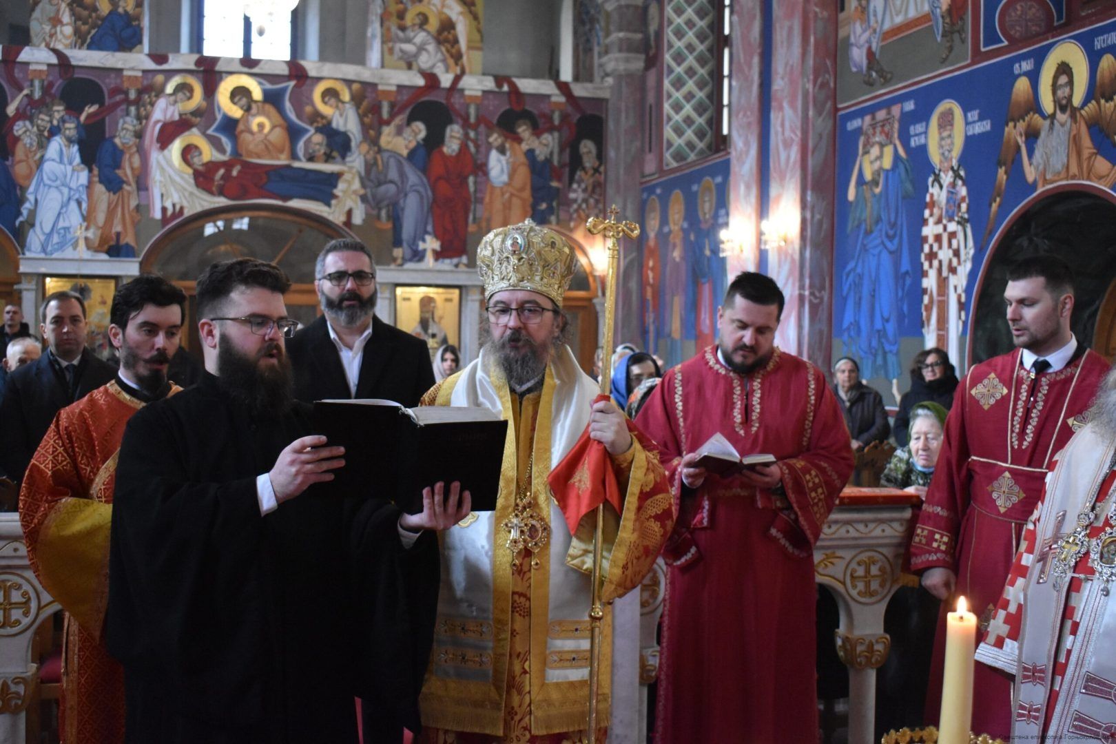Торжественом светом Литургијом сутрадан, 14. фебруара 2026. године, у Саборном храму Светог оца Николаја Мирликијског Чудотворца, Архиепископ горњокарловачки Герасим је прославио свога заштитника и своје крсно име, светог мученика Трифуна.