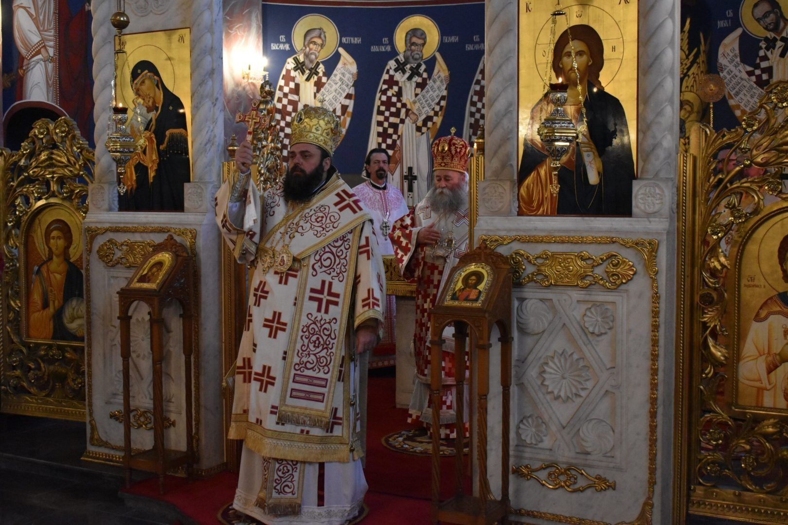 Евхаристијским сабрањем началствовао је Његово Високопреосвештенство Митрополит брегалнички г. Иларион уз саслужење преосвећене господе епископа осечкопољског и барањског Херувима и викарног јенопољског Никона, као и домаћина Високопреосвећеног г. Герасима, архимандрита Наума (Милковића), протопрезвитера-ставрофора Радојице Ћетковића и Милидрага Стокановића, јеромонаха Саве (Јаковљевћа) и јерођакона Гедеона (Врањеша).