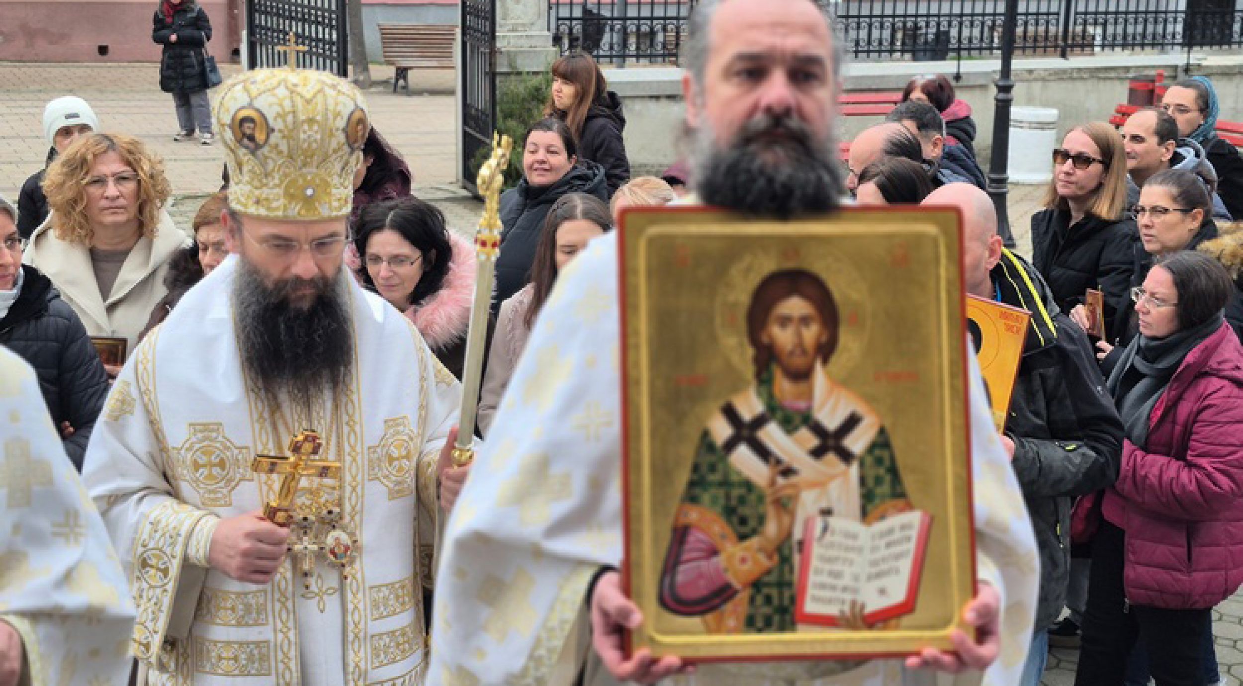 Након Литургије владика је поздравио и благосиљао вернике, те их је повео у литијски опход око храма након чега је читан Синодик Православља.