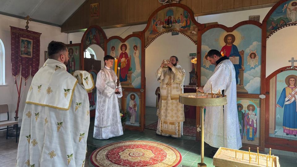 У Крстопоклону недељу, 15. марта 2026. године, Његово Преосвештенство Епископ лондонски и великобританско-ирски г. Нектарије је началствовао светом Литургијом у храму Светог Николе у Телфорду, уз саслужење протојереја Бориса Медака.
