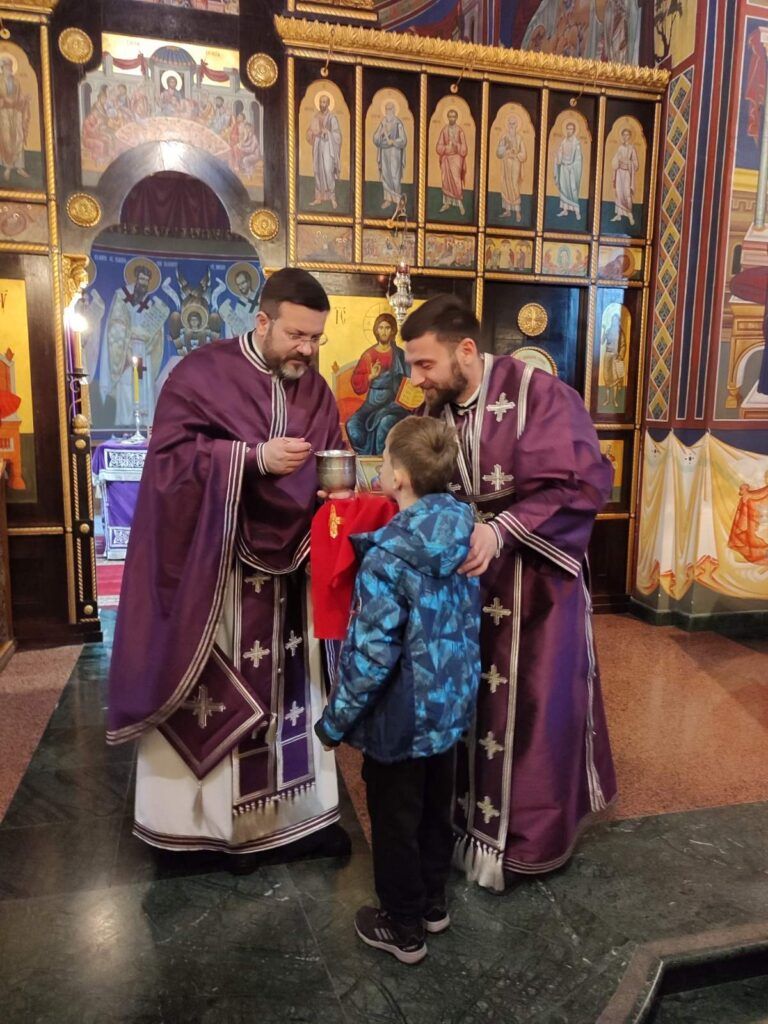 Око 180 ученика београдске Основне школе „Јован Миодраговић“, заједно је са својом вероучитељицом и учитељицама, молитвено је учествовало на светим Литургијама 25. марта и 1. априла 2026. године у храму Светог Саве на Врачару и приступило севтој тајни Причешћа показујући тако пример саборности и поштовања светиње.