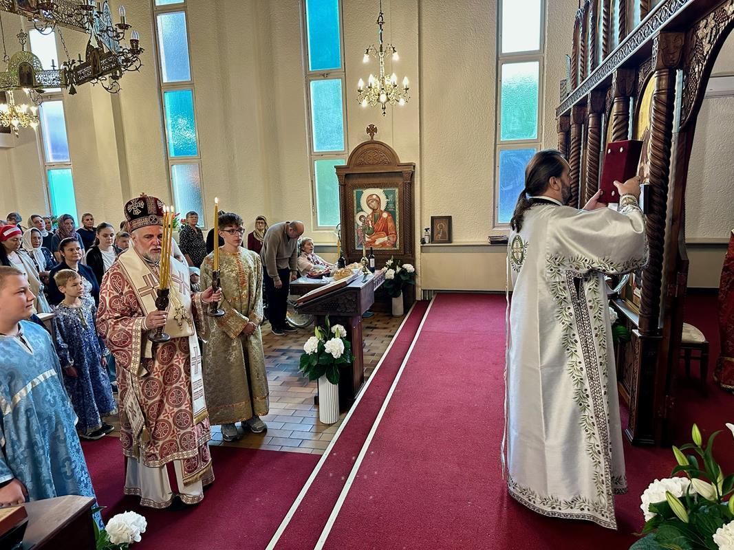 На празник Успења Пресвете Богородице, 28. августа 2025. године, Његово Високопреосвештенство Митрополит немачки г. Григорије је служио свету архијерејску Литургију у храму Васкрсења Господњег у Берлину. Његовом Високопреосвештенству саслуживали су протојереј-ставрофор Вељко Гачић и јерођакон Василије Старовлах.