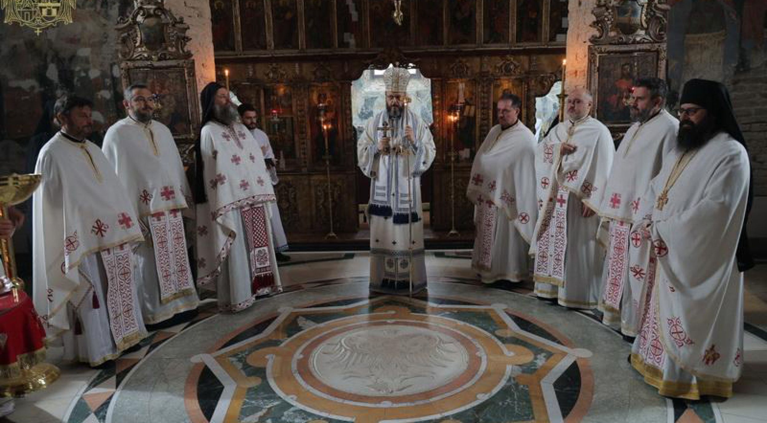 После заамвоне молитве, Епископ мохачки Дамаскин је благословио славске дарове, док је на крају литургијског сабрања братству манастира пожелео срећну славу, а верном народу срећан и благословен празник, преносећи благослове и молитвене поздраве Високопреосвећеног Митрополита бачког господина др Иринеја. На светој Литургији је појао хор Школе црквеног појања „Свети Јован Дамаскинˮ при Црквеној општини новосадској.