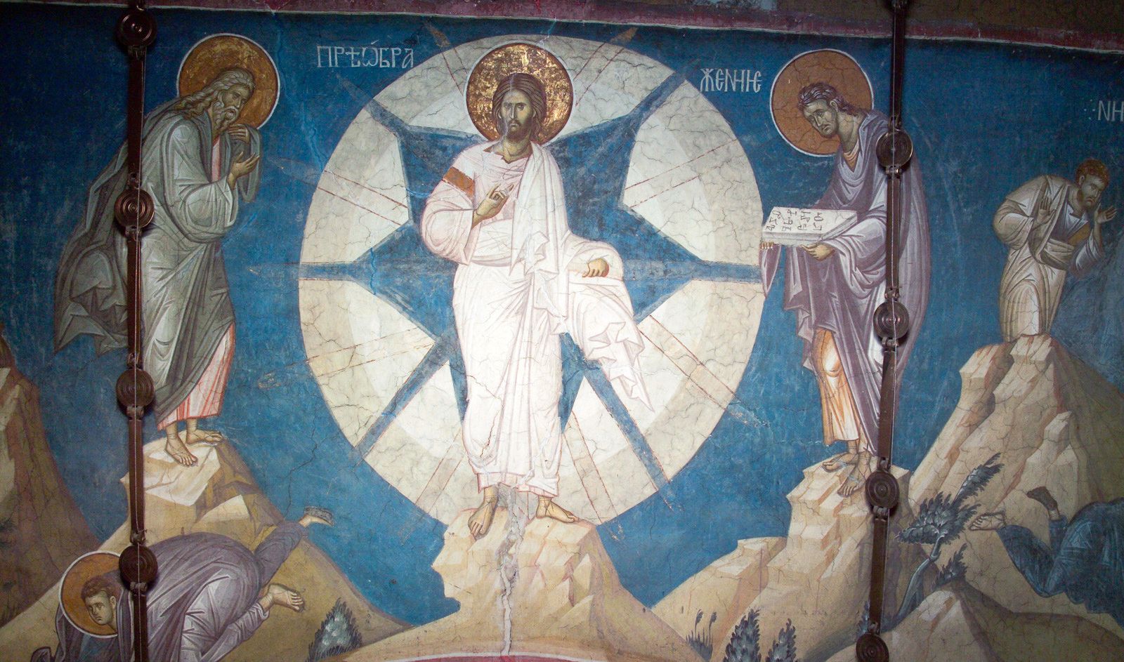 Након шест дана после тога Господ, праћен ученицима и мноштвом народа, крену из околине Кесарије Филипове у пределе Галилеје и стиже предвече до галилејске горе Тавор. Имајући обичај да се ноћу повлачи од својих ученика ради усамљене молитве Богу Оцу, Господ Исус, оставивши под гором народ и узевши са собом од ученика Својих само Петра, Јакова и Јована, узиђе с њима на врх Тавора да се помоли. И удаљивши се мало од њих, стаде се молити. А три ученика, уморни нешто од пењања на високу гору, нешто од дуге молитве, заспаше, као што казује еванђелист Лука: Петар и који бејаху с њим беху заспали (Лк. 9, 32). Док они спаваху, и расвит беше на помолу, Господ Христос се преобрази блистајући славом Свога Божанства, и по наређењу Његовом предстадоше Му два пророка: Мојсије од мртвих, Илија из раја, и говораху с Њим о изласку Његову који Му је требало свршити у Јерусалиму. Овај разговор и нарочито појава божанске силе пробудише апостоле, и они видеше неисказану славу Господа Исуса: лице Му је сијало као сунце, хаљине Његове блештаху као снег, и два човека стајаху у тој слави и говораху с Њим. Од тога ученике спопаде страх. И откривењем Светога Духа они одмах познаше у тим људима Мојсија и Илију и разумеше да се разговор води о добровољном страдању Христовом. Слушајући разговор, ученици стајаху с трепетом, наслађујући се у исто време гледањем Божанске славе, уколико то беше могуће за њихове телесне очи. И сам Господ им показа од Своје славе онолико колико то може видети природа човечија и не лишити се вида: јер је немогуће смртноме човеку видети невидљиво бесмртно Божанство. Мојсије је у старини молио Бога да му на очигледан начин покаже славу Свога Божанског Лица, али му је Господ одговорио на то: Не може човек лице моје видети и жив остати (2. Мојс. 33, 20). А када разговор Господа Христа са Мојсијем и Илијом беше при крају и апостоли Духом Светим сазнадоше за њихов одлазак, ожалости се Петар што ће пророци отићи из очију њихових, и желећи да се непрестано наслађује дивним призором славе Христове и чесних пророка, он се осмели и рече: Господе, добро нам је овде бити; и да начинимо три сенице: једну Теби, и једну Мојсију, и једну Илији (Лк. 9, 33). Док Петар то говораше, светао облак, који оба пророка беше донео Христу и који је опет по Божјем наређењу имао узети их и однети свакога на своје место, заклони апостоле окруживши врх горе; и још више се уплашише апостоли када, приближујући се ка Христу, зађоше у облак и чуше из облака глас који говораше: „Ово је Син мој љубљени, Њега послушајте!“ – При овим речима одозго апостоли од великог ужаса потпуно изгубише присуство духа, и страховито уплашени падоше на земљу. А кад они попадаше ничице, слава Господња, и пророци с њом, сакри се од њих. Господ пак приступивши ученицима који лежаху на земљи дотаче их се говорећи: „Устаните, не бојте се!“ И подигнувши очи своје, ученици никога не видеше до Исуса сама. И поче свитати, и они стадоше силазити с горе, и Господ им заповеди да никоме не казују што су видели док Он, после страдања и смрти, не васкрсне у трећи дан из гроба. И они умучаше, и ником не јавише ништа у оне дане од онога што видеше.