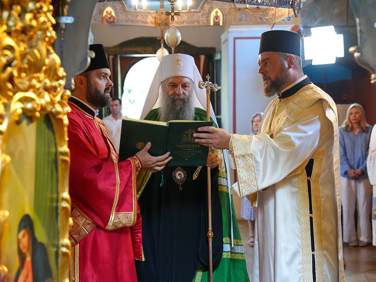 Његова Светост Патријарх српски г. Порфирије је началствовао 3. августа 2025. године светом Литургијом у топчидерској цркви Светих апостола Петра и Павла, задужбини кнеза Милоша Обреновића.