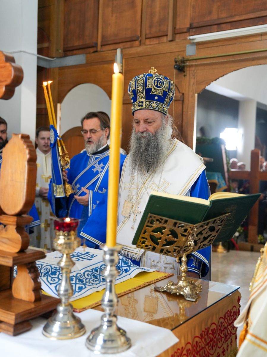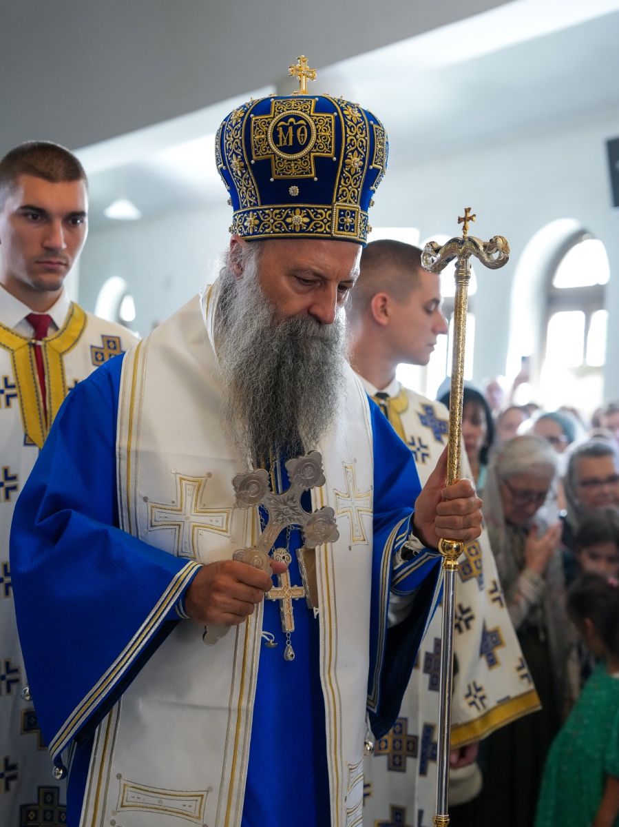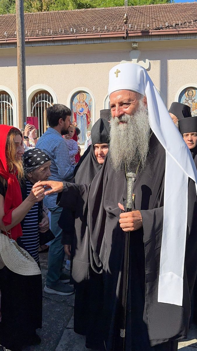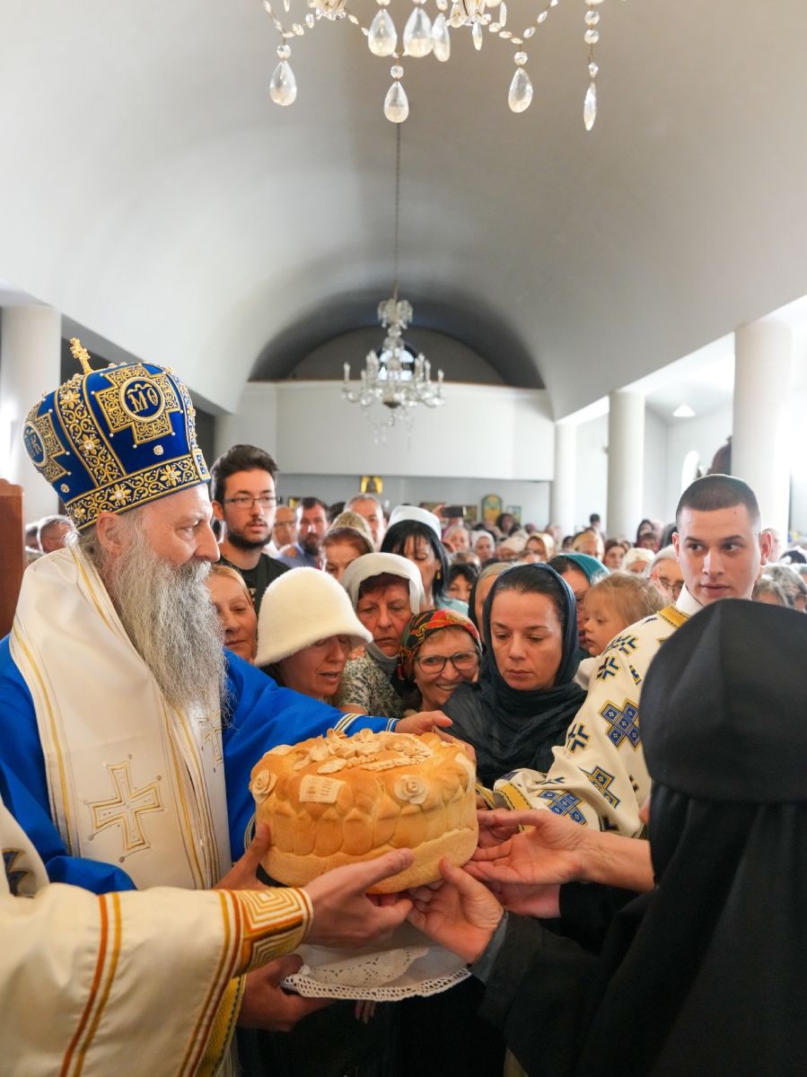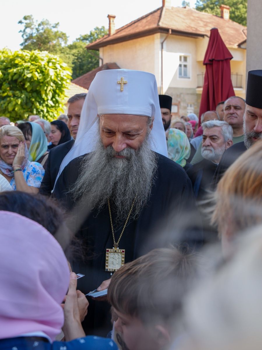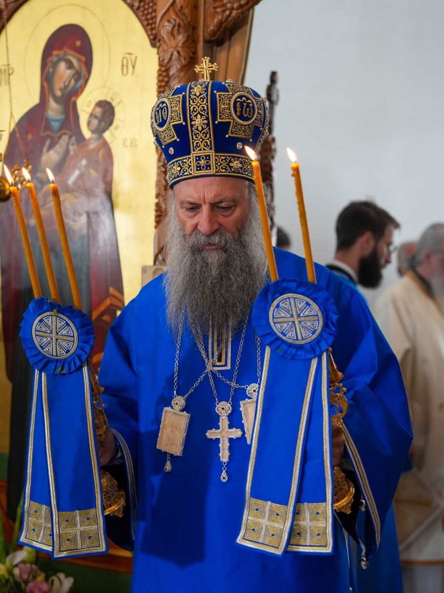 – Молитва Пресвете Богородице има одјека у уху Божјем, а у себи обухвата сваког од нас, зато се Њој и молимо, али молимо се и Њеном Сину који је волео своју Мајку до те мере да треба да буде сваком од нас пример за углед. Господ наш Исус Христос је показао какви треба да будемо према мајкама, према женама уопште. Одлазећи од нас, када је распет, Он се брине о читавом свету, то распеће је за све нас, али посебно ставља нагласак бригом о Мајци својој и поверава је Светом Јовану да је чува, да брине о Њој. Тај пример Господа треба да буде подстрек и сваком од нас, да бринемо о својим мајкама и о свакој жени. Нарочито треба да се бринемо о својим мајкама ми у Србији, јер - ако је тачан податак који је дошао до мојих ушију - у Србији има 320.000 самохраних мајки. Поставља се питање где су ти мушкарци, где су ти очеви и где су та браћа? Посебно на данашњи дан, када се обраћамо Пресветој Богородици, треба да отворимо своја срца у односу на мајке, сестре и кћери. Јер не само да је толики број самохраних мајки међу нама, него је и толико жена, који број не знамо, а које трпе разноврсно насиље – рекао је Његова Светост Патријарх Порфирије.