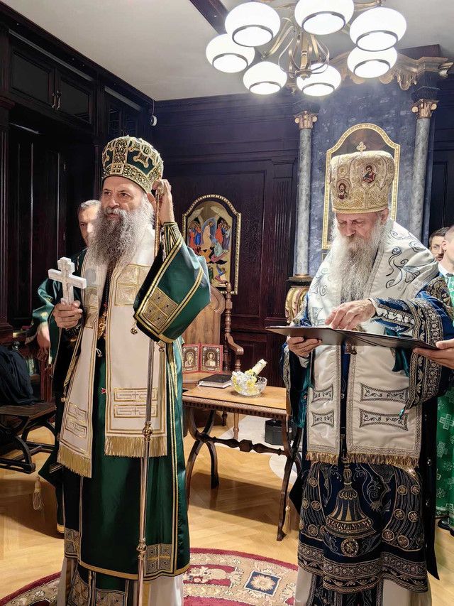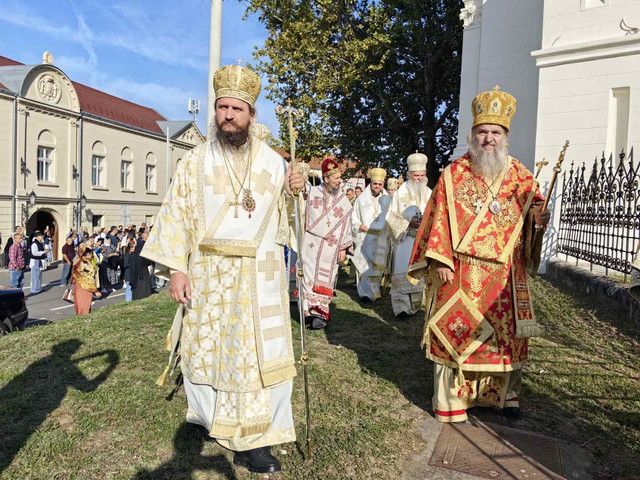 Његовој Светости су саслуживали: Архиепископ антидонски г. Нектарије из Јерусалимске Патријаршије; Митрополит димитријадски и алмирски г. Игнатије из Атинске Архиепископије; Архиепископ михаловско-кошицки г. Георгије из Православне Цркве Чешких земаља и Словачке; митрополити црногорско-приморски г. Јоаникије, немачки г. Григорије, рашко-призренски г. Теодосије, захумско-херцеговачки и стонско-приморски г. Димитрије, будимљанско-никшићки г. Методије; епископи вашингтонско-њујоршки и источноамерички г. Иринеј, пакрачки и славонски г. Јован, швајцарски г. Андреј, бихаћко-петровачки г. Сергије, буеносајрески и јужно-централноамерички и администратор загребачко-љубљански г. Кирило и викарни липљански г. Доситеј, као и многобројно свештеномонаштво, свештенство и ђаконство.