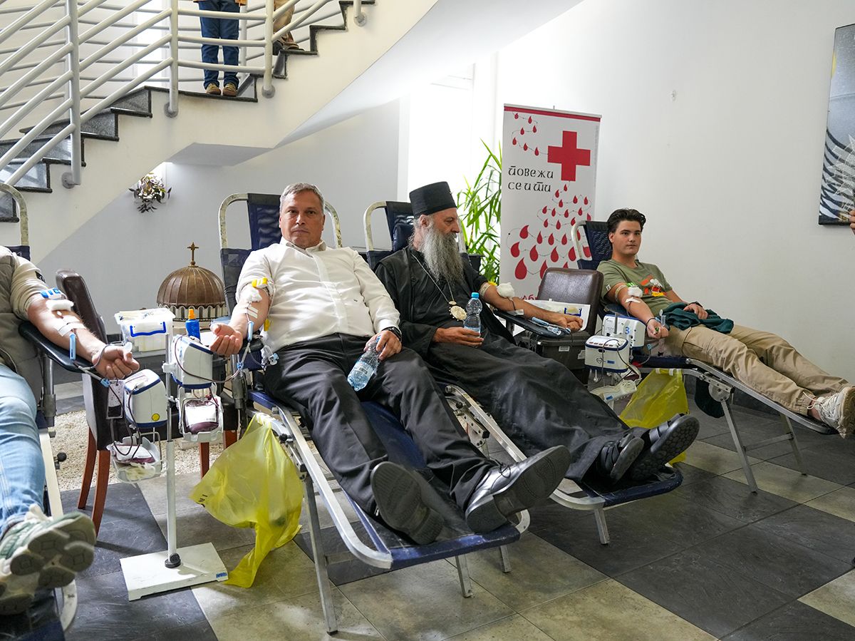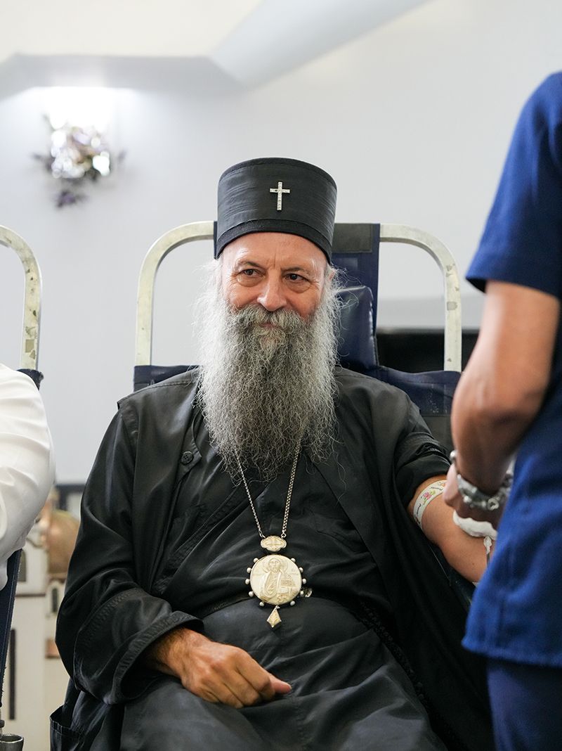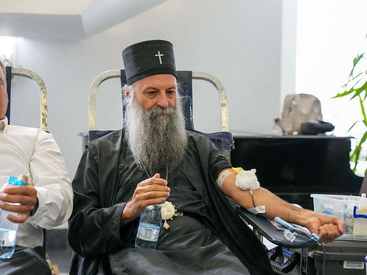 Његова Светост Патријарх српски г. Порфирије је учествовао данас у Парохијском дому храма Светог Саве на Врачару у акцији добровољног давања крви коју организују Црвени крст Србије и Институт за трансфузију крви.