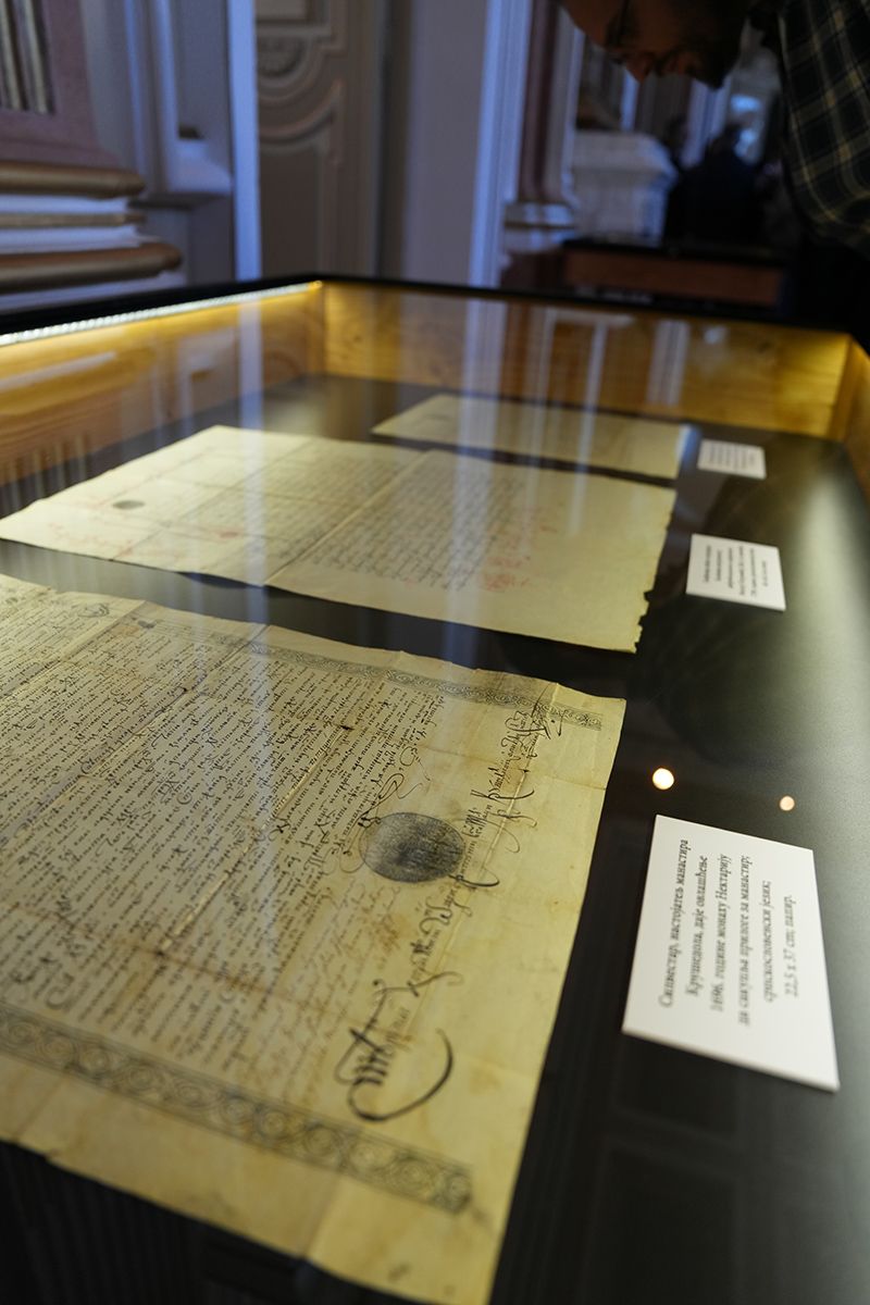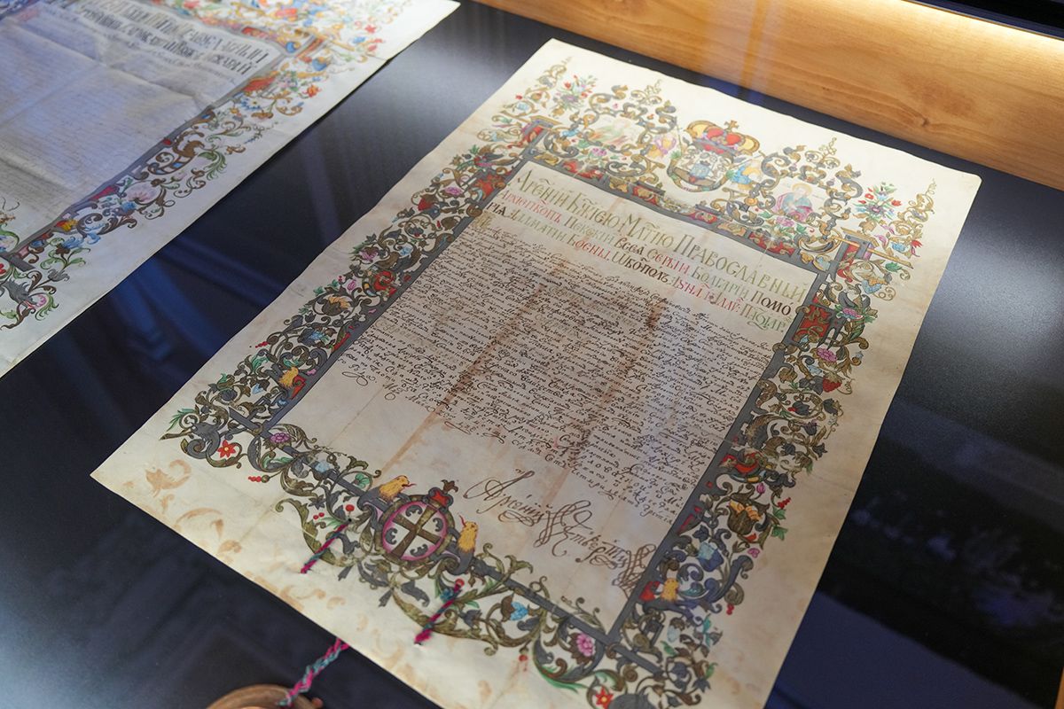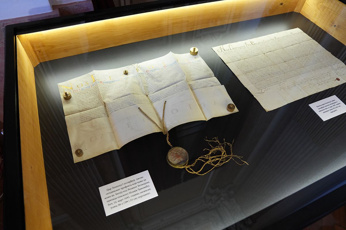 Од Арсенија III Чарнојевића, преко Викентија Поповића Хаџи Лавића, Мојсија Петровића, Арсенија IV Шакабенте, Павла Ненадовића, Мојсија Путника, Стефана Стратимировића, Јосифа Рајачића до Георгија Бранковића, Лукијана Богдановића и осталих, приказане су најзначајније повеље и дипломе спољашњег и унутрашњег црквеног живота. Репрезентативни документи на папиру и пергаменту, на латинском, српскословенском, рускословенском, румунском, мађарском и немачком језику сведоче о правном оквиру живота и рада Српске Цркве, Карловачке Митрополије која је била жива наследница Пећке Патријаршије и као таква фигурисала после њеног укидања 1766. године у српском народу, али и шире, вршећи покровитељство над свим православним заједницама у Хабзбуршкој монархији, не само српским.