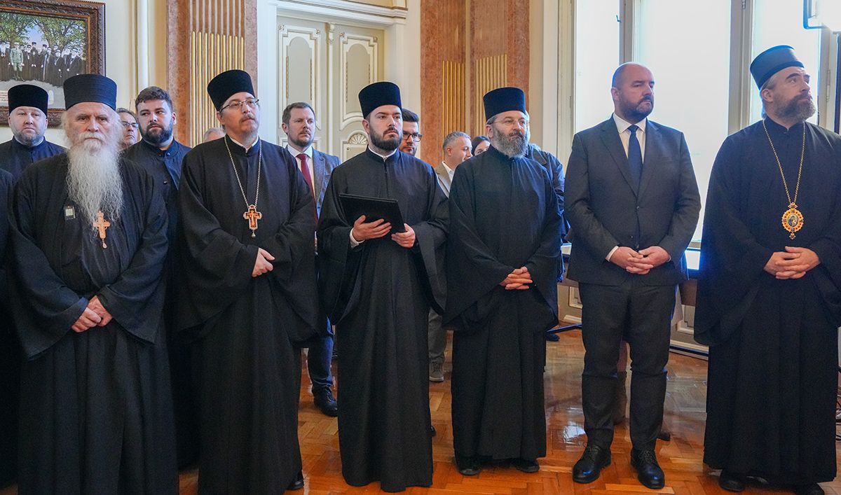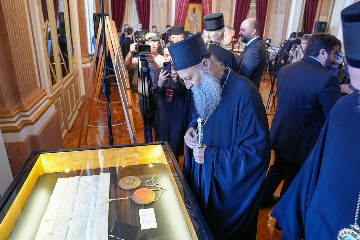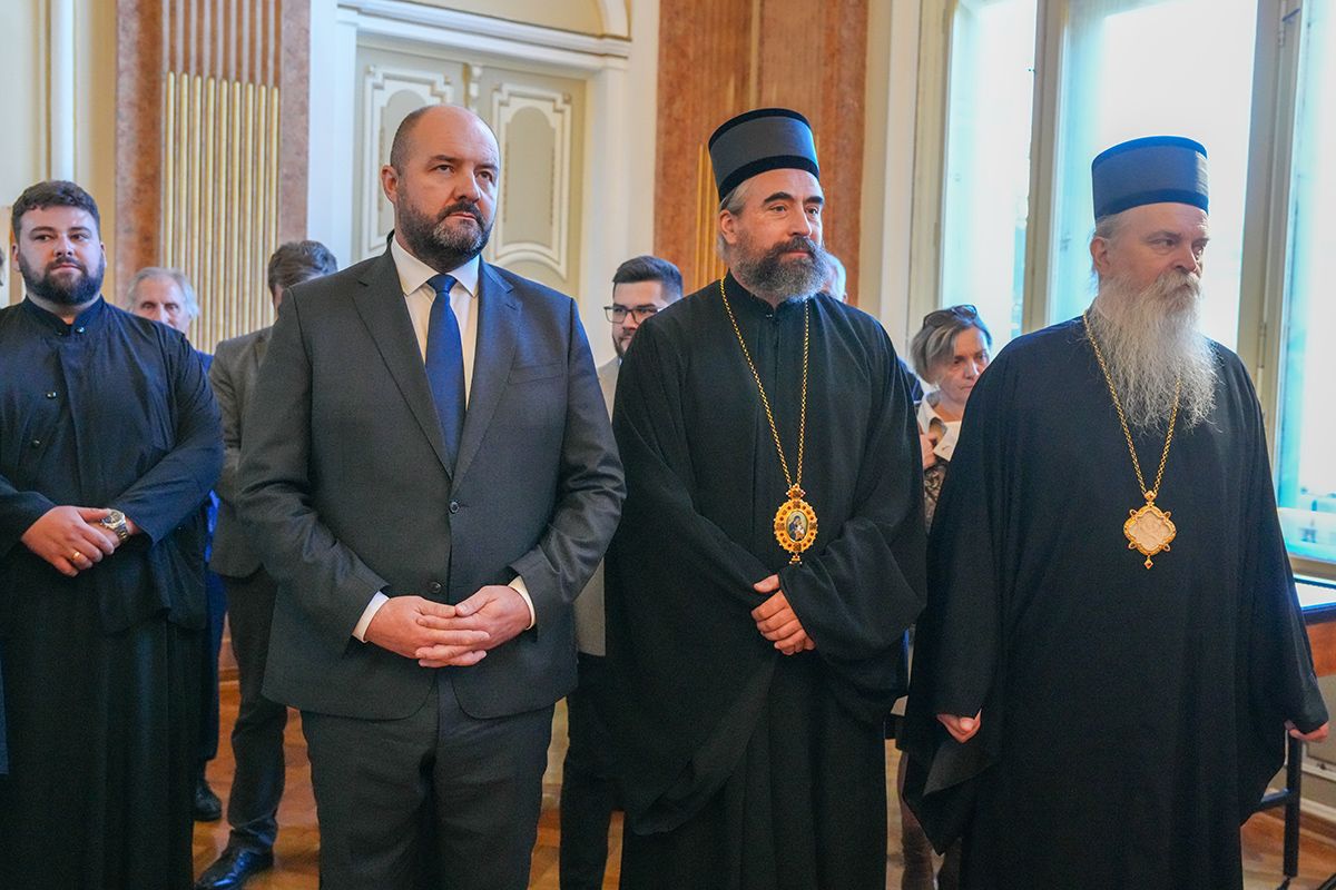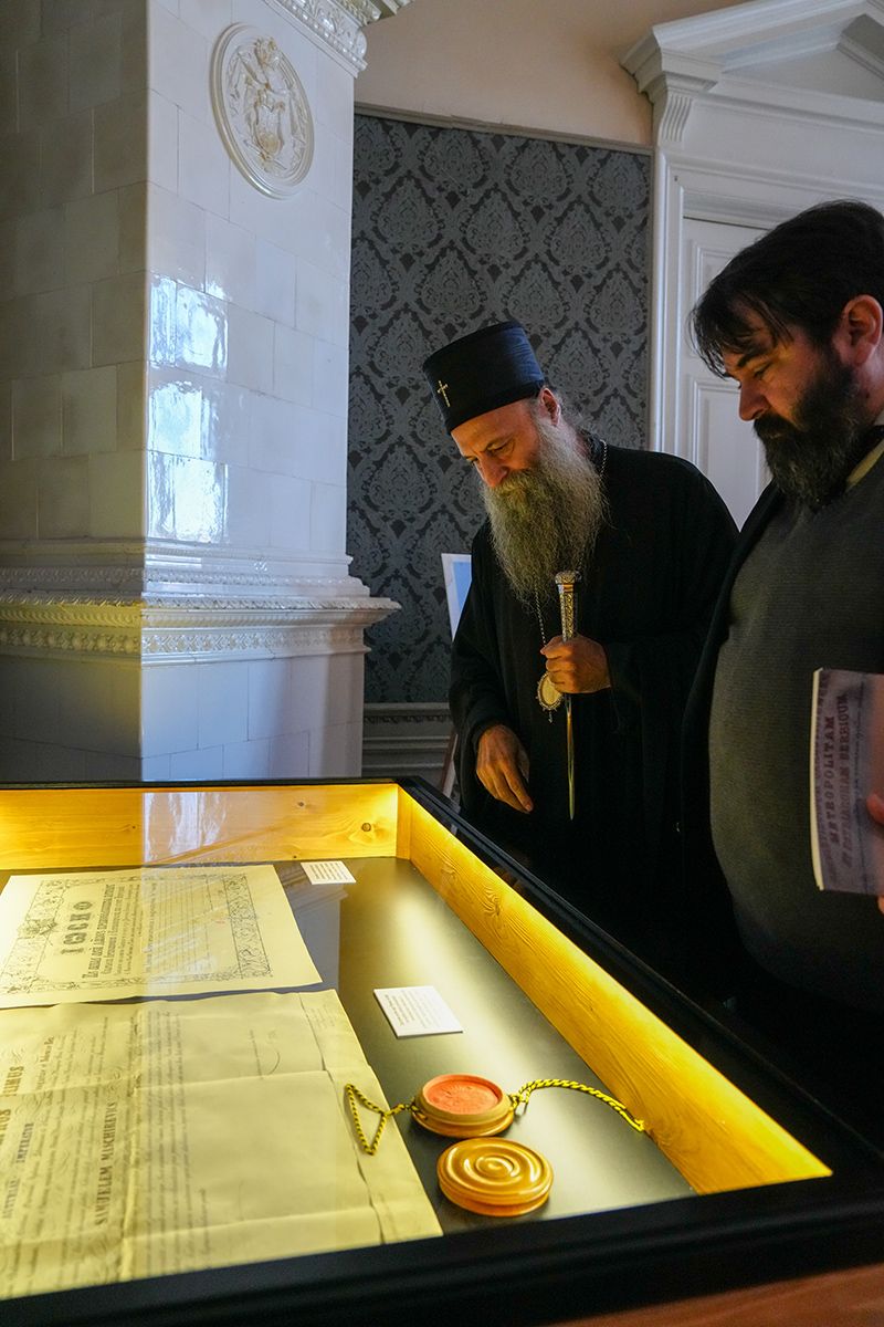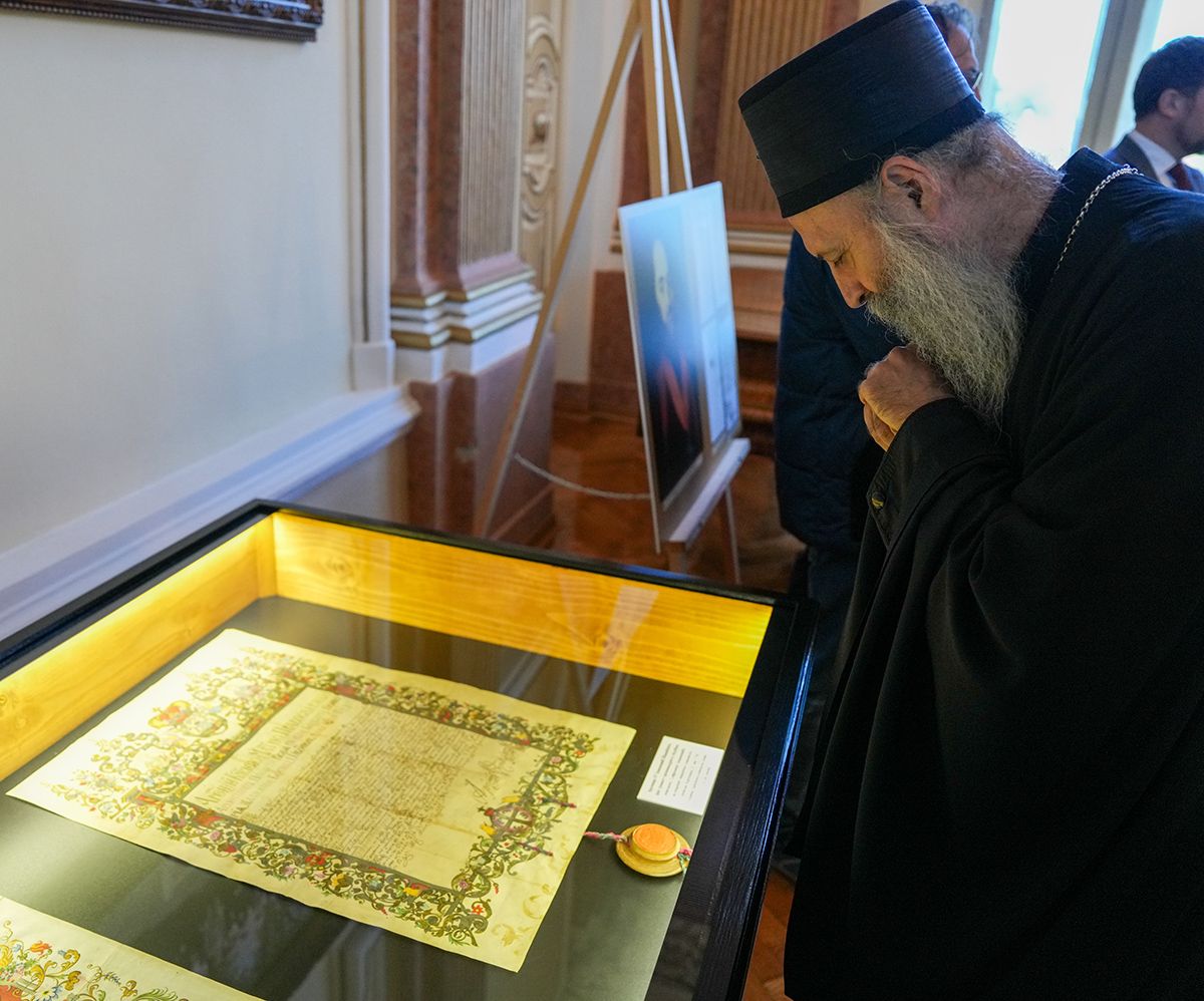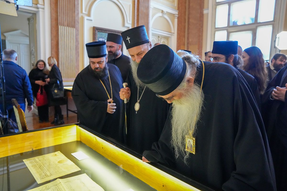 После редовних седница Светог Архијерејског Синода и Патријаршијског управног одбора, којима је председавао у Патријаршијском двору у Сремским Карловцима, Његова Светост Патријарх српски г. Порфирије је данас, 29. октобра 2025. године, отворио изложбу архивских докумената под тематским насловом „Документа Српског Сиона – Потписи и печати српских патријараха и митрополита у Сремским Карловцима 1690–1913. године“.