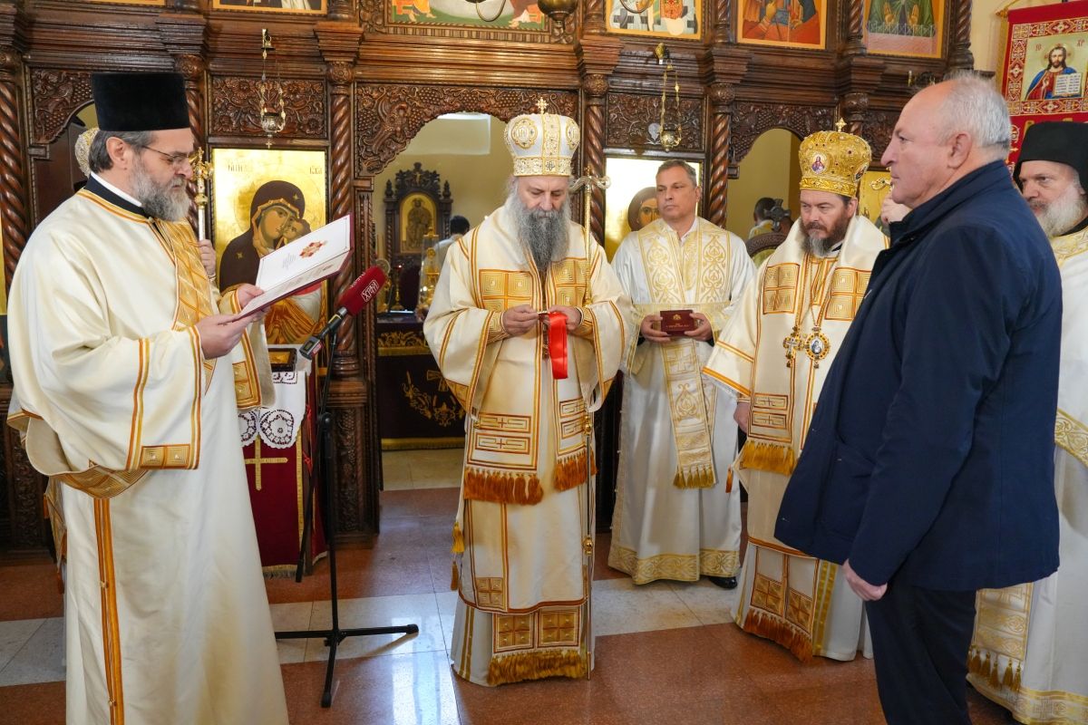 Патријарх Порфирије богослужио у храму Светих апостола Петра и Павла у Винчи