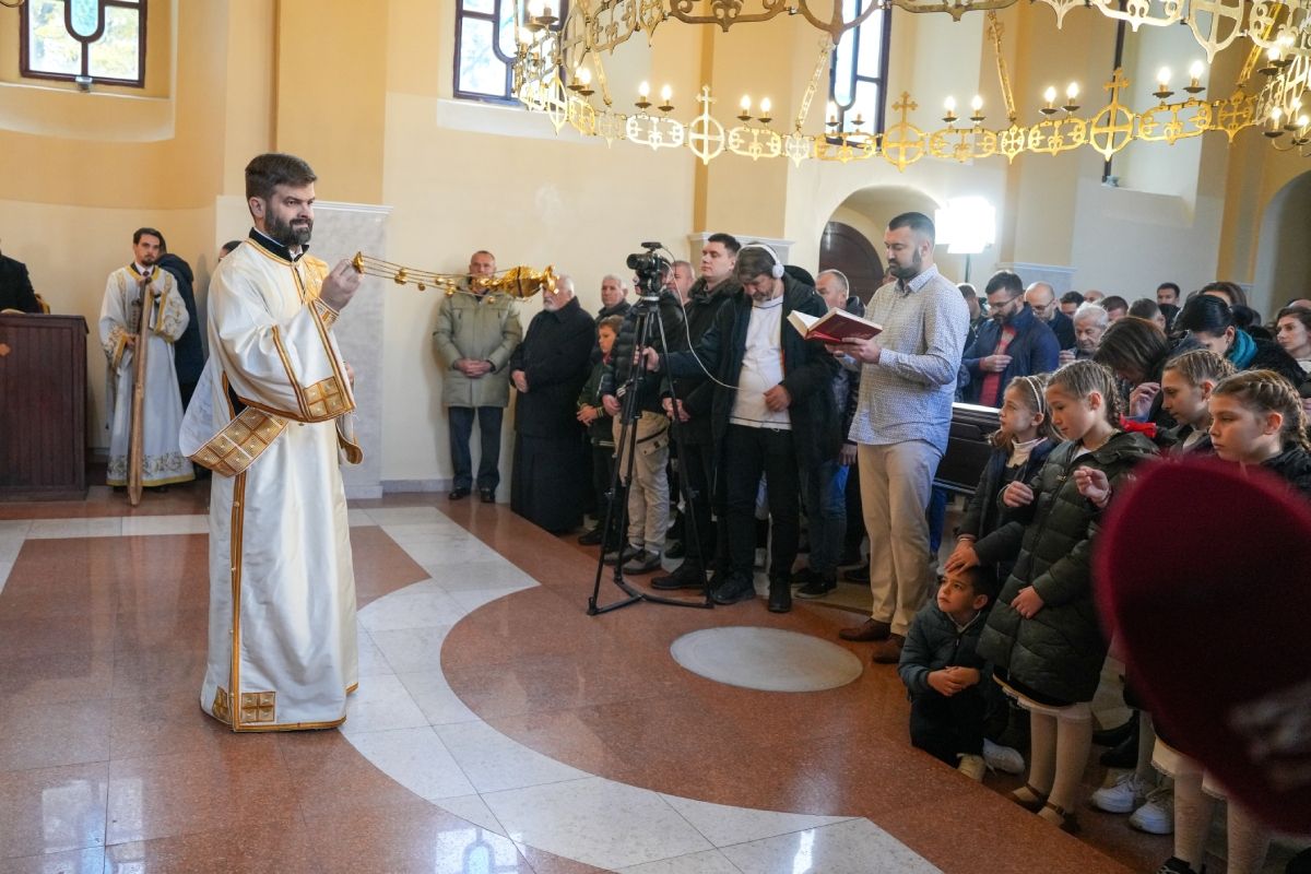 Предстојатељу Српске Православне Цркве Патријарху Порфирију су саслуживали: преосвећена господа викарни епископи липљански Доситеј и топлички Петар; архимандрит Стефан, игуман манастира Сланци; протојереј-ставрофор Драган Станишић; јереји Александар Митровић и Томислав Ђокић; протођакони Драган Радић и Радомир Врућинић; и ђакон Василије Перић.