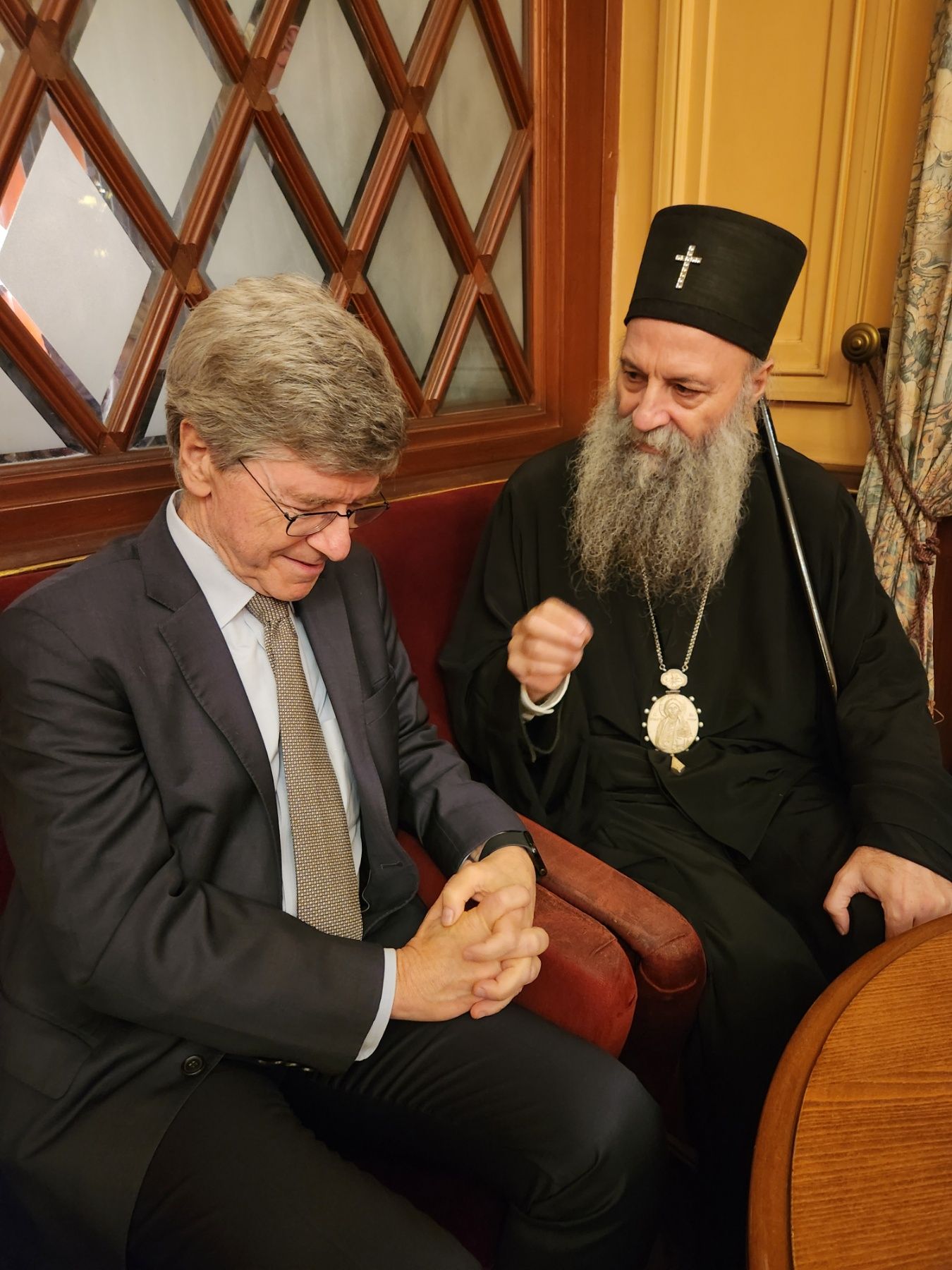 Његова Светост Патријарх српски г. Порфирије је узео 16. децембра 2025. године учешће у јавној дискусији коју је поводом посете једног од најугледнијих светских економиста Џефрија Сакса, професора Универзитета Колумбија у Њујорку, организовао Центар за међународну сарадњу и одрживи развој (ЦИРСД) у оквиру промоције новог издања часописа Хоризонс под називом „Азијско-пацифички век“.