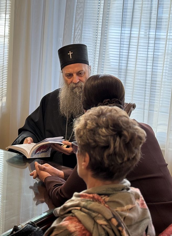 Његова Светост Патријарх српски г. Порфирије je разговарао данас у Парохијском дому храма Светог Саве у Београду са делегацијом Удружења жена жртава рата из Републике Српске, коју су чиниле гђа Божица Живковић Раилић и гђа Гордана Ботић, аутори књиге Наша исповијест – Жене жртве рата из Републике Српске 1992–1995.