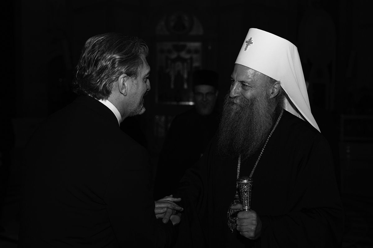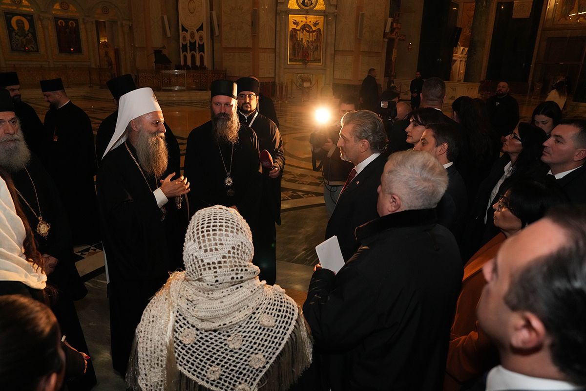 Његова Светост Патријарх српски г. Порфирије је свечано дочекао 18. децембра 2025. године у храму Светог Саве у Београду г. Михаила Кавелашвилија, председника Грузије, који борави у званичној посети Србији.