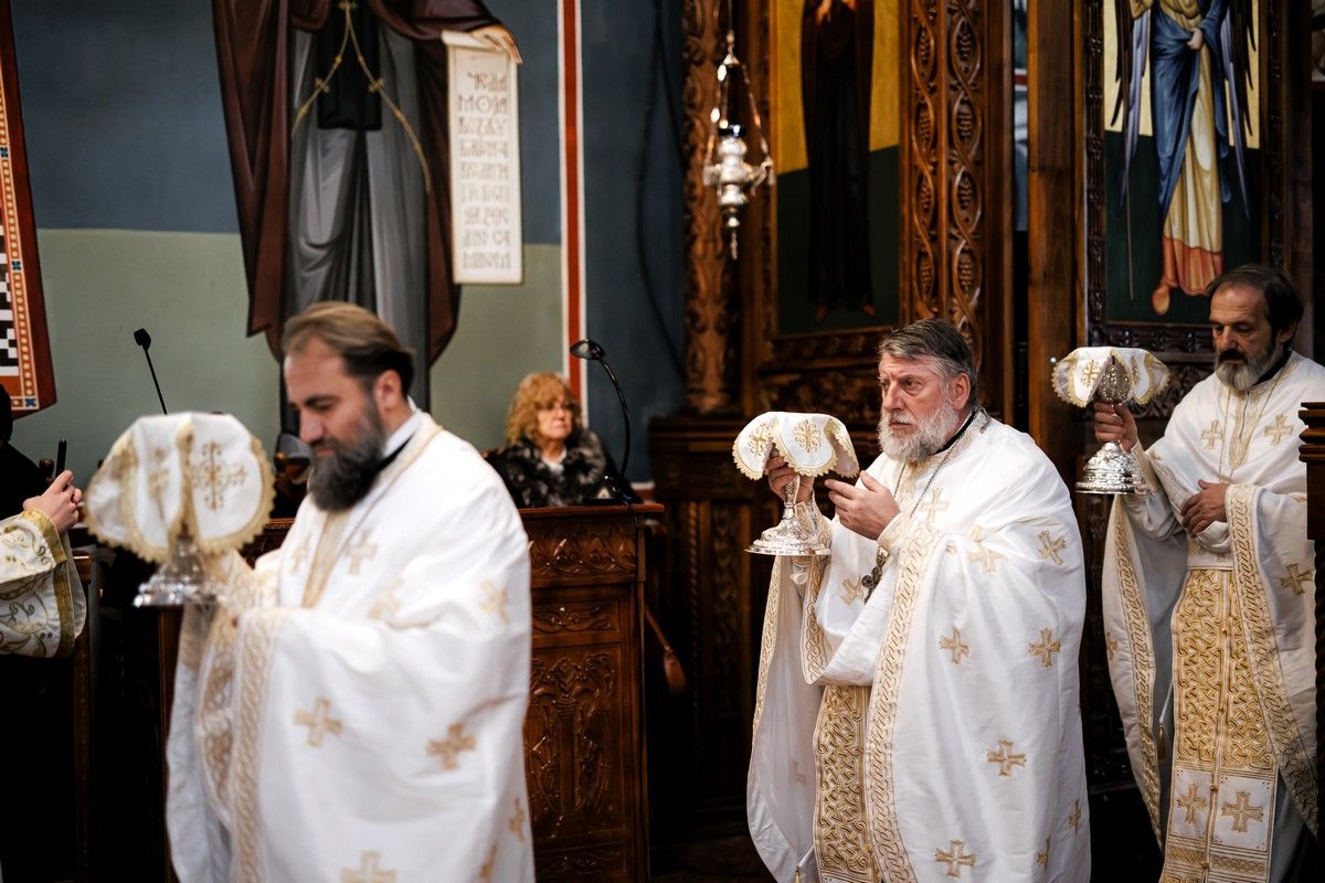 После заамвоне молитве, у славу и част Светог оца Николаја, Његова Светост г. Порфирије је осветио славске дарове и преломио славски колач заједно са Високопреосвећеним г. Арсенијем, домаћином славе.
