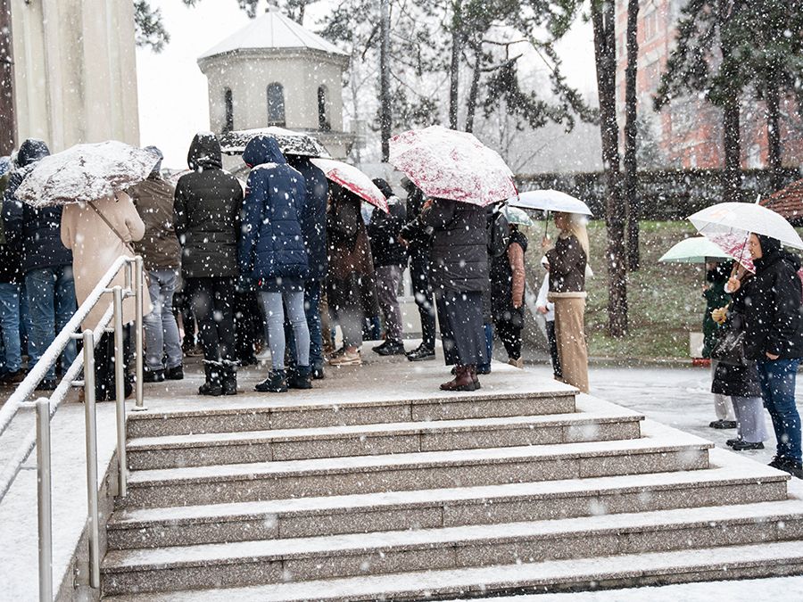 – Браћо и сестре, ево нас у радости великој сабрани у овом светом храму. И као што овај снег, који веје и покрива нас белином, спаја небо и земљу, тако је и Господ превечно одредио да небо и земља буду повезани, да небо и земља буду једно, да оно што је на небу буде и на земљи, а то је воља Божја – беседио је Патријарх, а затим и протумачио прочитани одељак из Јеванђеља по Матеју у коме је изложено породично стабло Господа нашег, Сина Божјег и Сина Дјеве, Онога у којем су се небо и земља спојили: