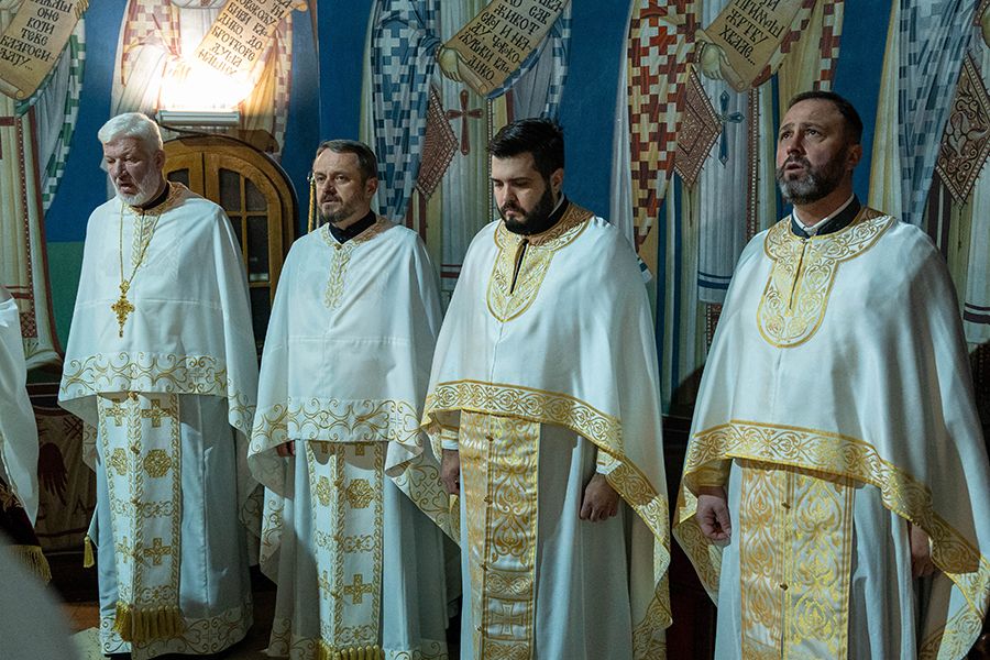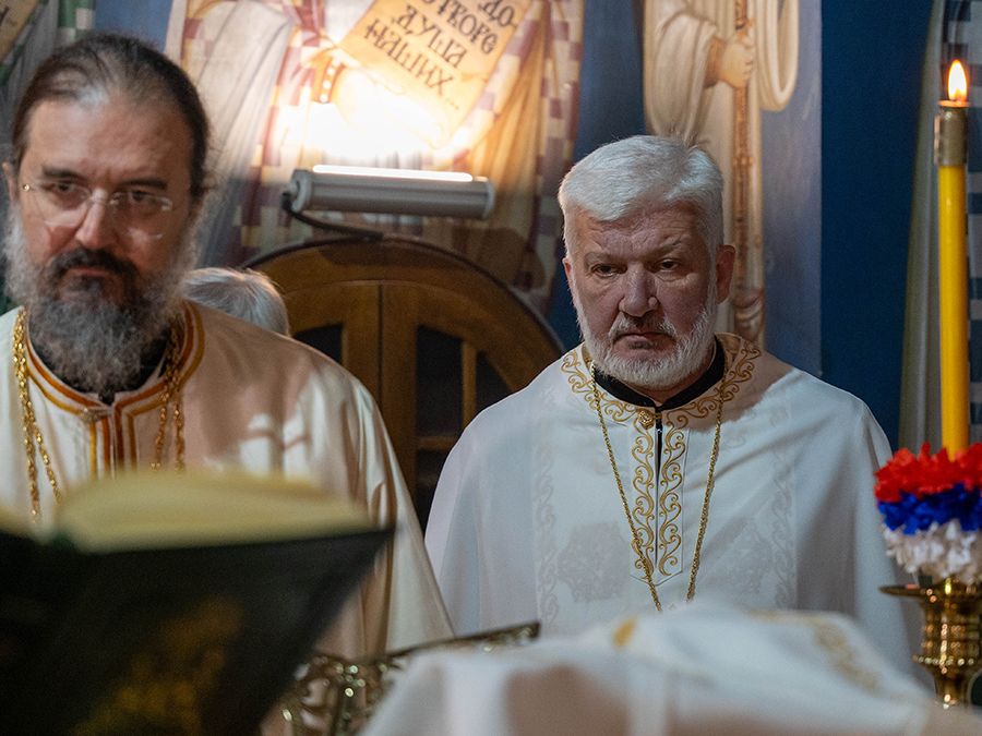 Његовој Светости Патријарху српском г. Порфирију су саслуживали: преосвећена господа епископи моравички Тихон и липљански Доситеј; протојереји-ставрофори Бранко Топаловић, Милојко Топаловић, Радич Радичевић и Божо Бакајлић; протојереј Војислав Костић; протонамесници Милан Марић и Игор Лукић; јереји Петар Бакајлић, Никола Мићаковић и Мирослав Митровић; новорукоположени јереј Милојко Топаловић; протођакони Драган Радић и Радомир Врућинић; ђакони Василије Перић и Дражен Крагић.