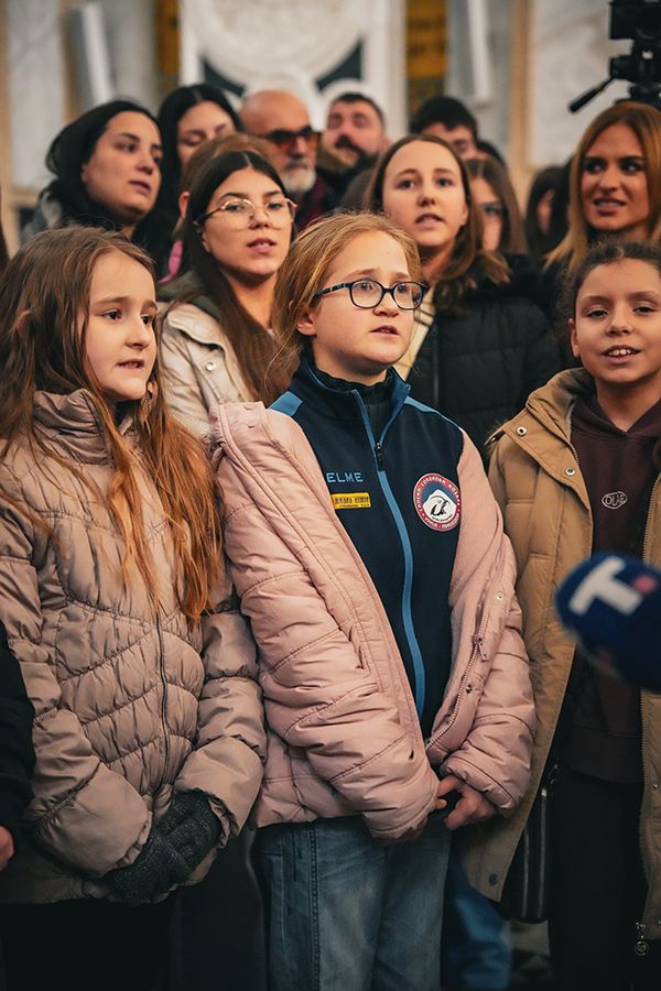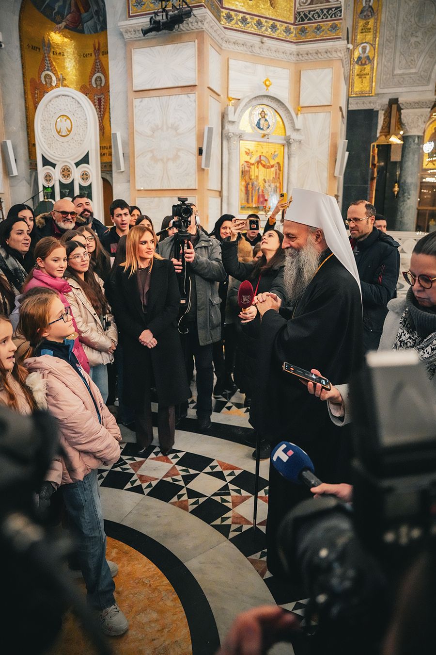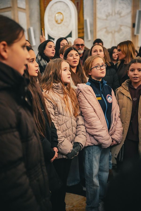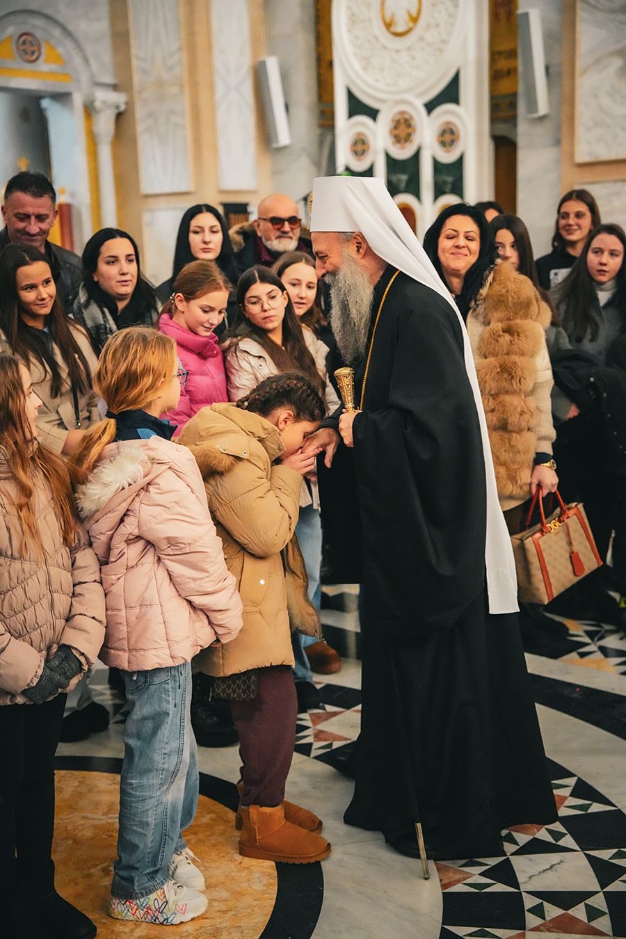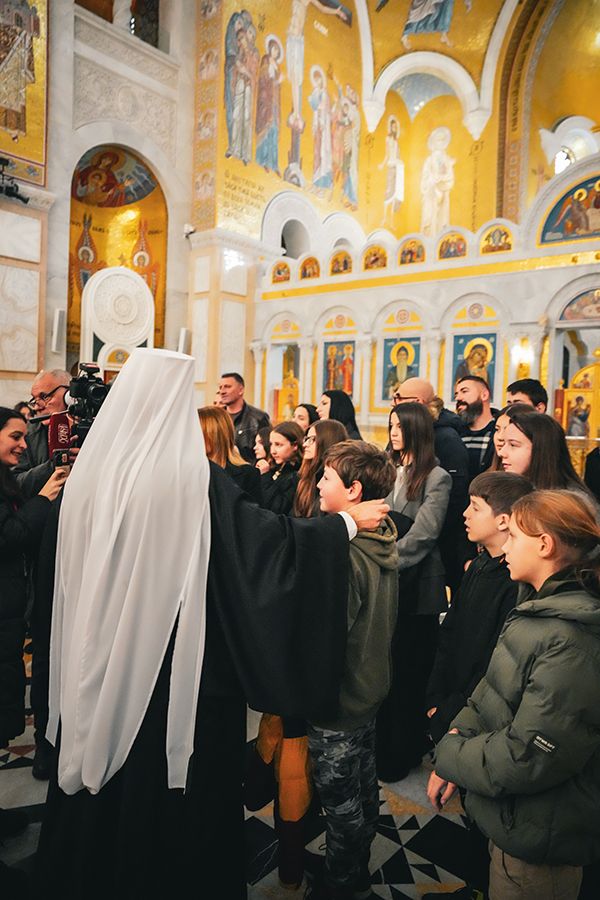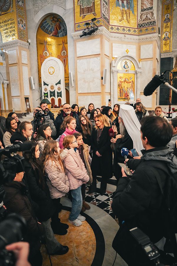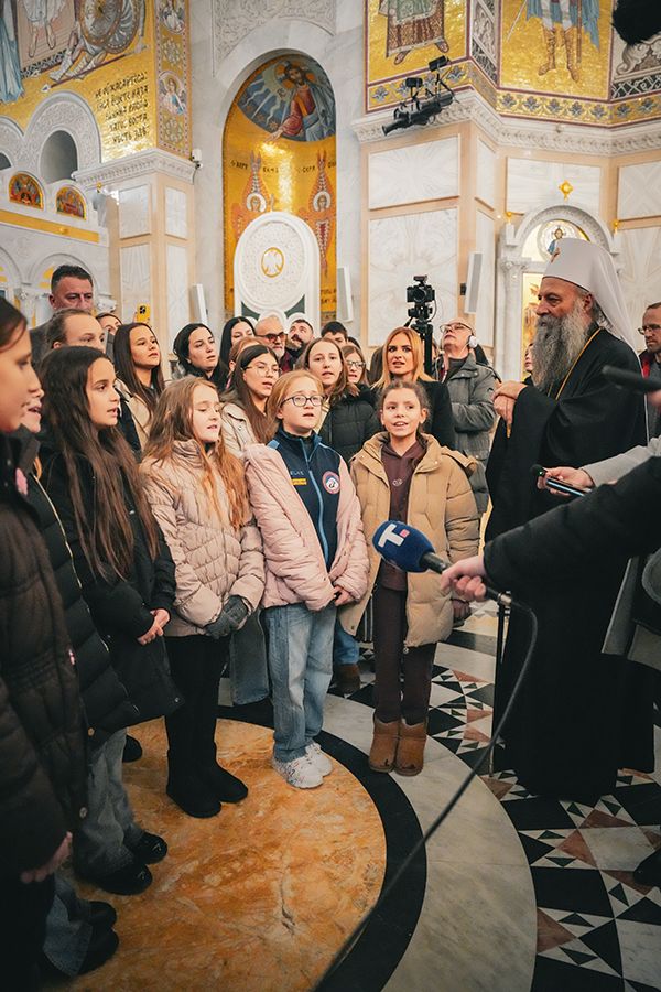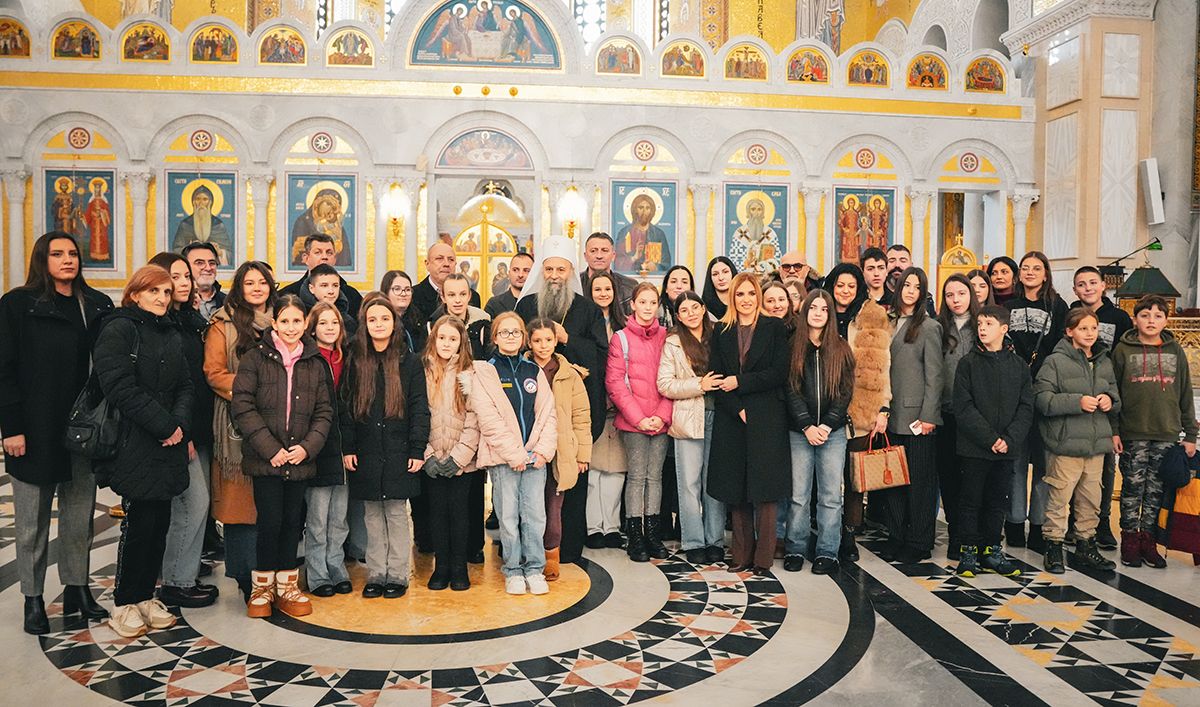 Патријарх Порфирије са малишанима из Приједора, Херцег Новог и Грахова у храму Светог Саве на Врачару