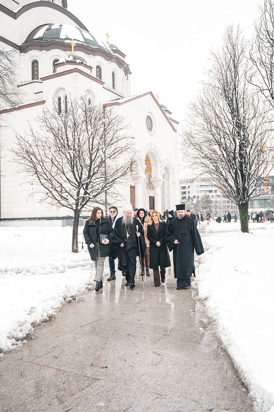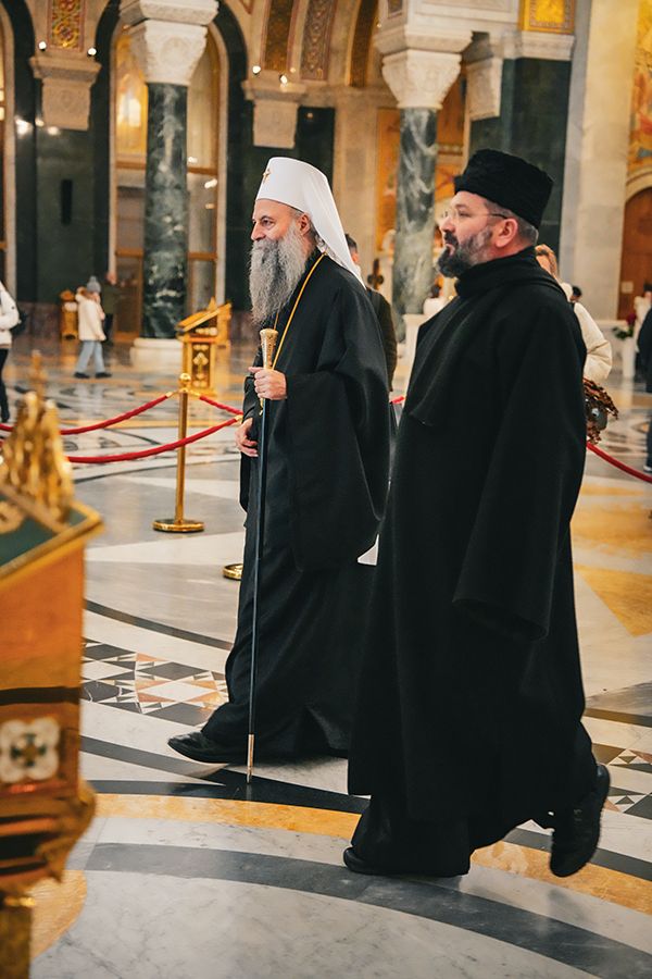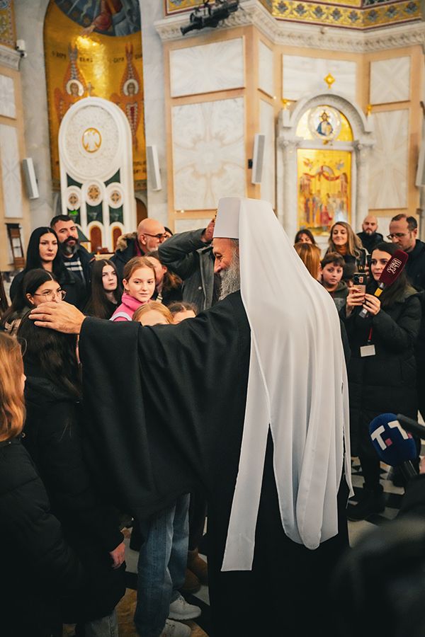 Његова Светост Патријарх српски г. Порфирије је срдачно дочекао 5. јануара 2026. године у храму Светог Саве на Врачару младе Светосавце из Приједора, Херцег Новог и Грахова.